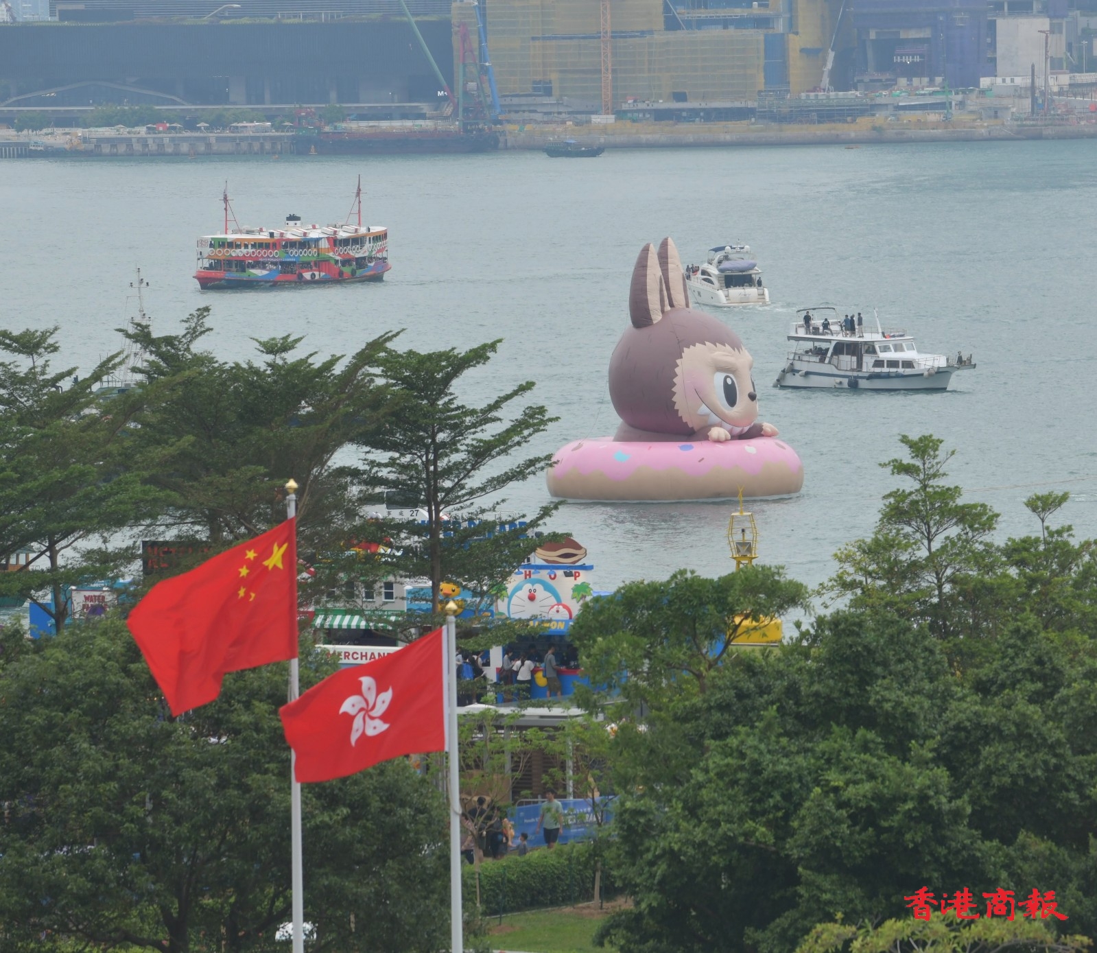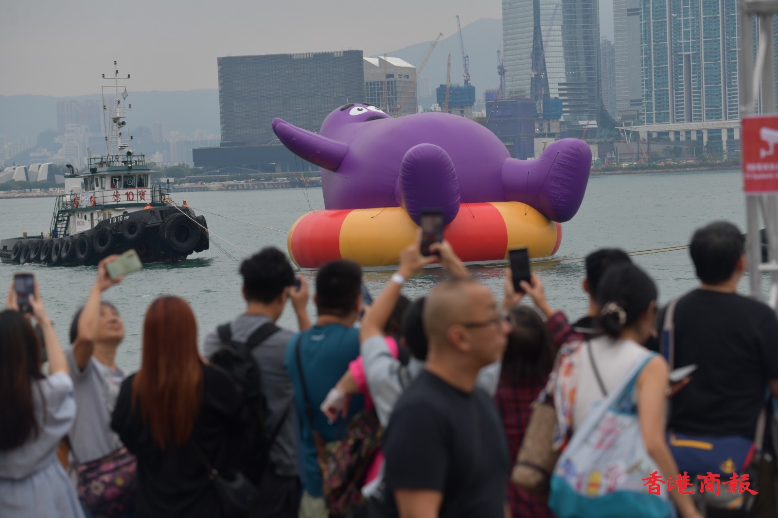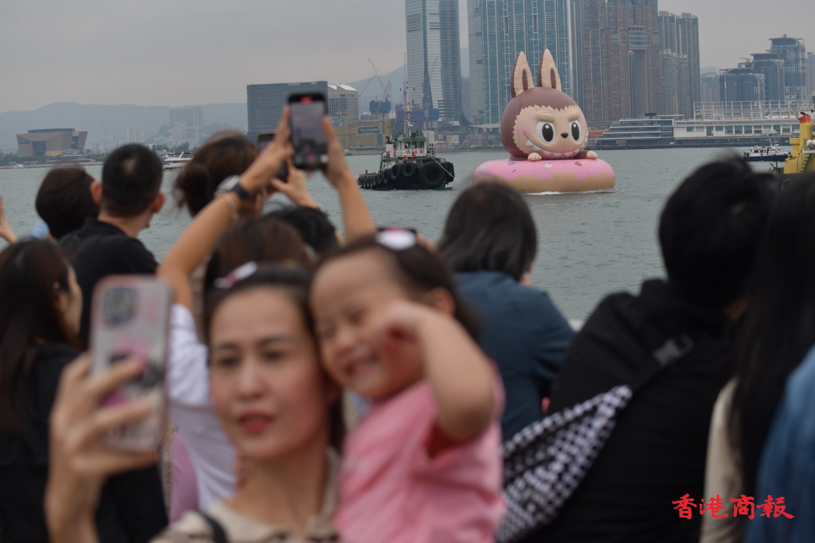 多啦A夢、KAWS & 芝麻街(Elmo)、滑嘟嘟及LABUBU四座巨型海上充氣雕塑展示8日以來,已吸引成千上萬市民旅客前來駐足觀賞打卡,今日更組成「夢幻艦隊」,於下午2時啟航,依次駛離金鐘添馬公園對開海域,巡遊維港兩岸兩圈,歷時逾3小時,為香港獻上一場前所未見的海上藝術盛典。