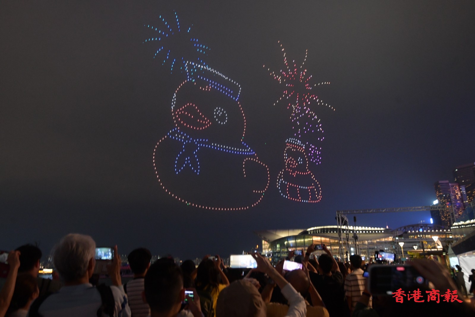 傍晚約6時,當4座雕塑雖已離開維港,但「維港海上大巡遊」金鐘展區上空閃現驚喜彩蛋,主辦單位ARR在支持夥伴宏利支持下,無人機匯演作為壓軸,為時約10分鐘,為「維港海上大巡遊」掀起終章。匯演以活動主視覺及多個參與市集的人氣角色化身光影圖案,於添馬公園上空綻放,照亮「巡遊市集」,為這場跨越藝術、娛樂與文化的盛典畫上完美句號。