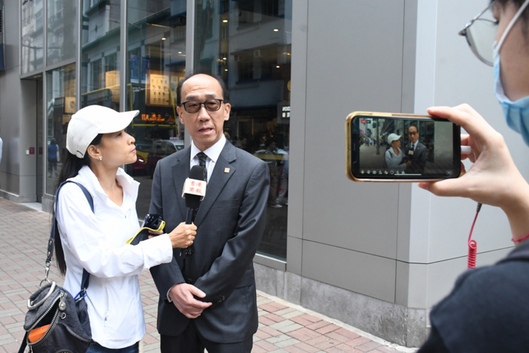 今日,江旻憓交表前聯同支持者見記者,信和集團主席黃永光、已報名參選立法會選委界別美麗華集團首席營運總裁陳宗彝現身。