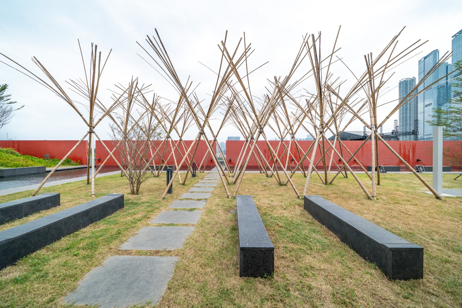 圖片說明:《舞動竹林》以本地建材竹作為媒介,編織出抽象而沉浸的森林意境,向竹子非凡的韌性與可塑性致敬。(圖片來源:香港故宮文化博物館)
