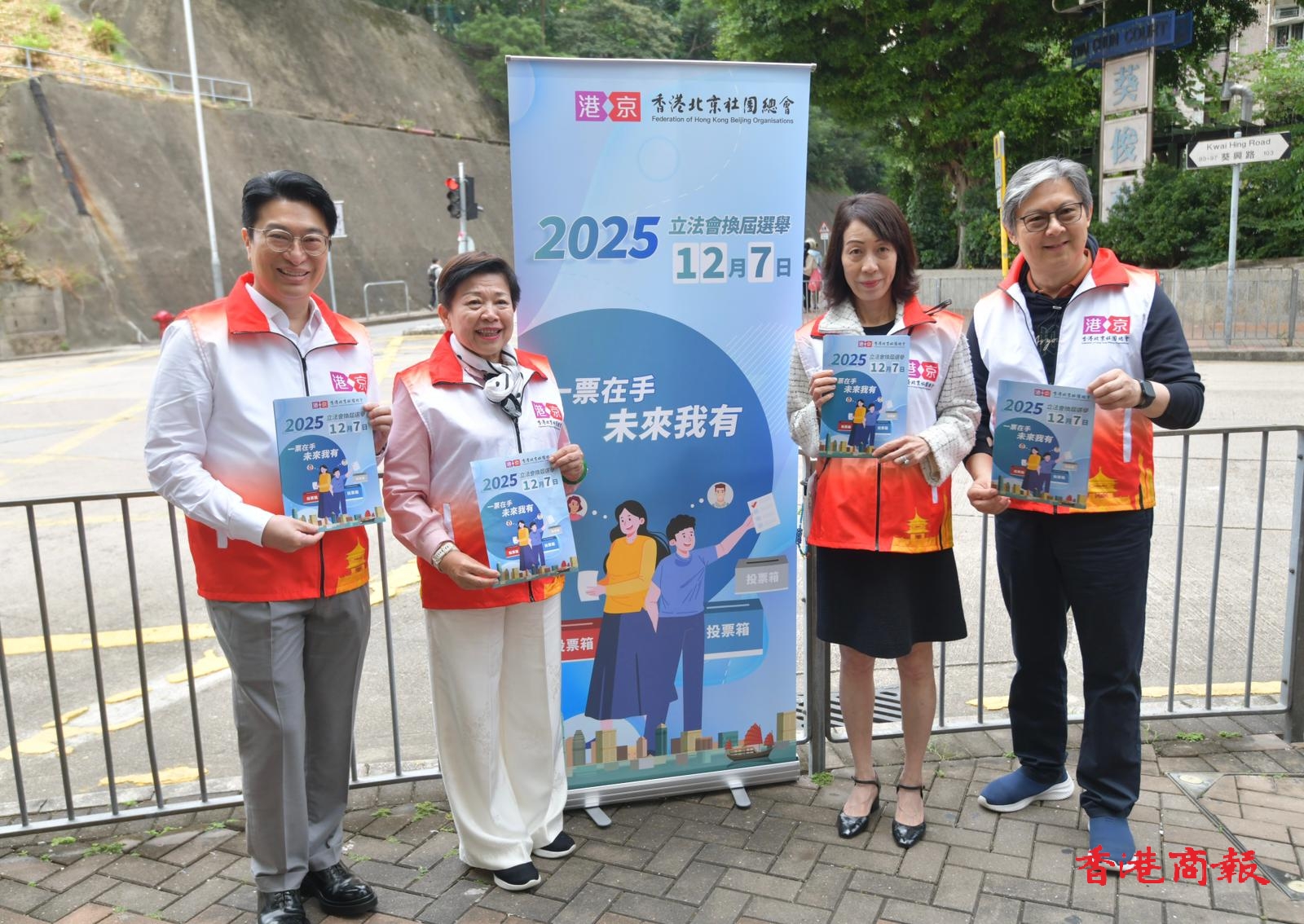 2025立法會換屆選舉將於12月7日舉行,香港北京社團總會多名負責人連日來先後到全港各區擺設街站,向市民宣傳推廣立法會選舉。今日(13日)總會會長、全國政協常委施榮懷,常務副會長、恒基地產集團主席李家誠聯同多名總會負責人到葵興邨擺設街站。