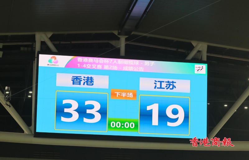 今日分組賽最後一場以43比5大勝內蒙古的港隊,4強迎鬥江蘇,上半場接連達陣成功,大幅領先21比0,江蘇上半場前有王桂勇破蛋,港隊上半場領先21比5。易邊後,江蘇有朱加恒達陣,加上梅子希追加射門,追近至12比21。不過港隊未有自亂陣腳,在丹馬克兩次達陣下,拉開比數至33比12,江蘇最後憑魏念浙達陣得分,結果港隊贏33比19完場,成功打入明晚的決賽,將與山東合演冠軍戰。兩軍曾於周三的分組賽交手,港隊贏24比12。