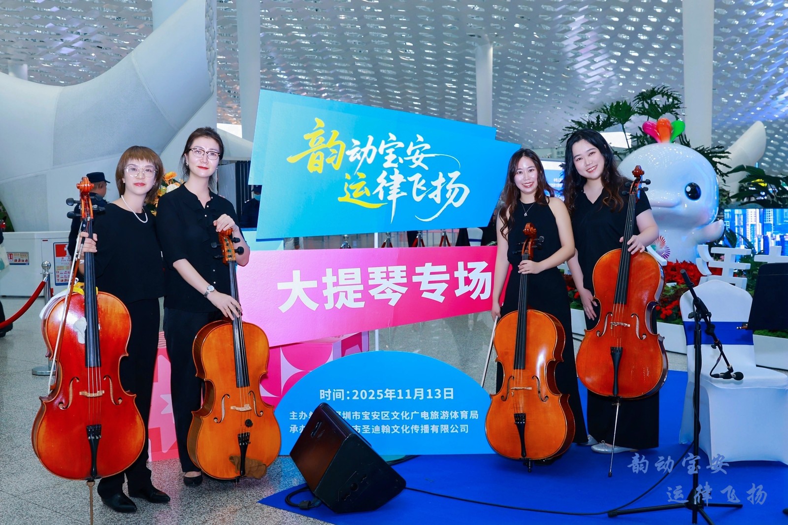 是次作為系列活動的第四場,大提琴專場將藝術與空間融合,將韻味悠長的大提琴表演與機場現代化城市樞紐相結合,讓文化突破傳統場館限制,走近現代化出行與生活,通過藝術與音樂,傳遞城市溫度,彰顯寶安底蘊。