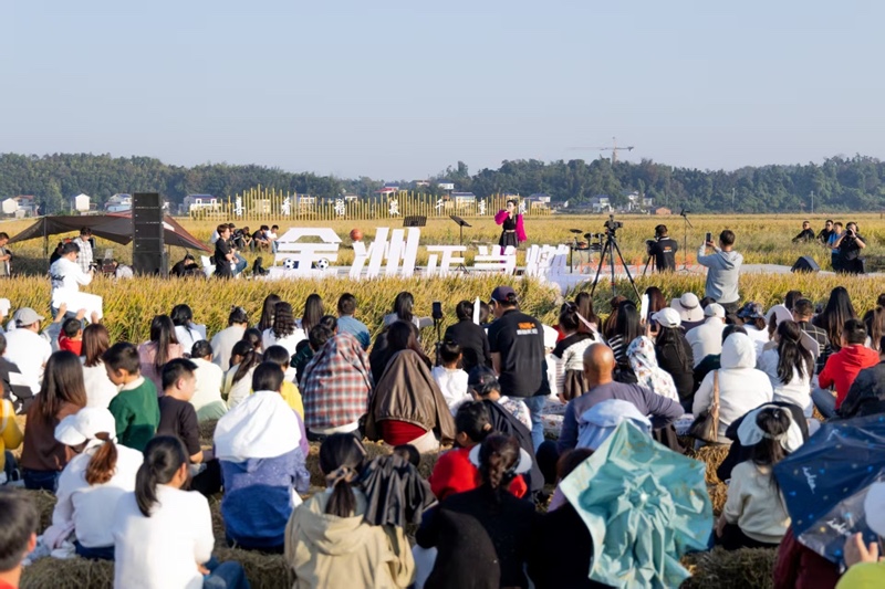 11月15日,「金洲正當燃」小鎮青年稻田音樂會在寧鄉市金洲鎮箭樓村上演,活動現場更有摸魚比賽、「迷你村BA」、非遺皮影戲,現場遊客還可以在「寧饗好物」市集品嘗寧鄉四小碟等地方特色美食,可謂驚喜多多。