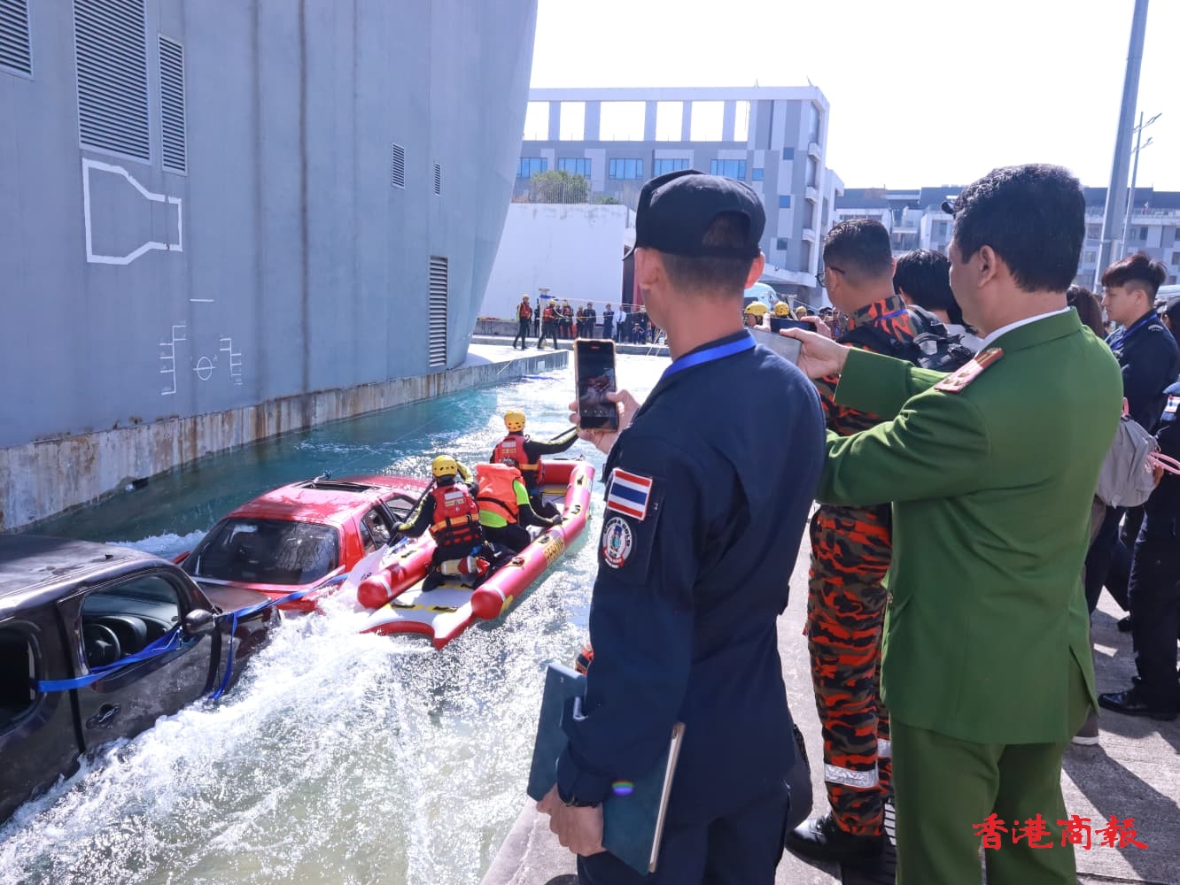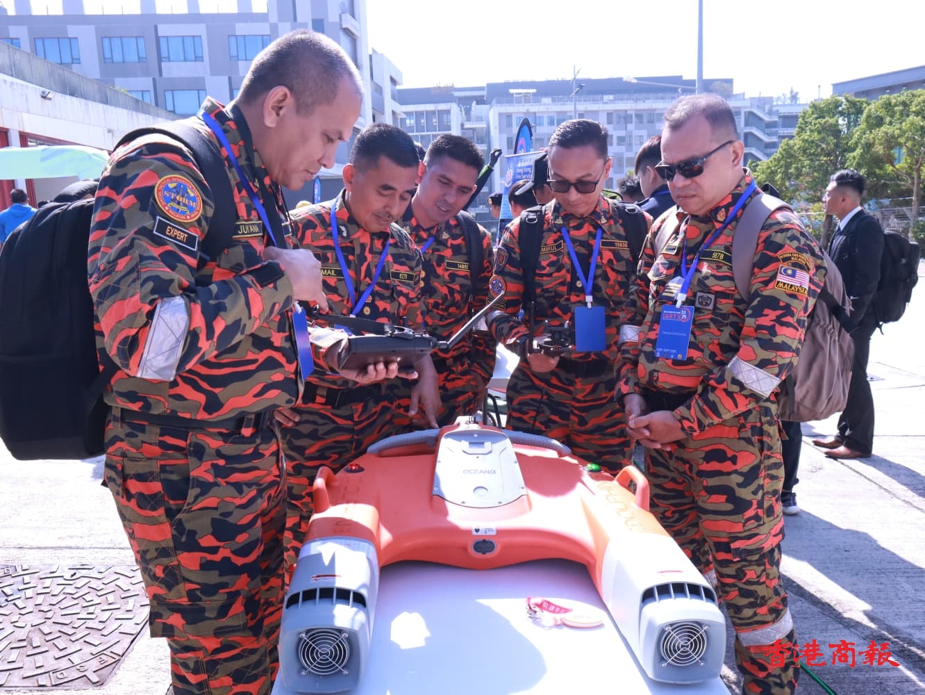 據了解,水域救援示範環節有4個環節,包括進行科技示範,包括有水下推進器、遙控救生擔架和遙控救生水泡,它們都可突破風浪、突破海浪,顯示其效能與速度,另有拯救員的拋繩拯救和下水的真實拯救,同時有兩架車前後被水圍困,會運用可控移動點設置,應付一些極端挑戰,進行玻璃處理、穩定性評估、建立空間之後將傷者撤離。(記者唐信恒/攝影馮瀚文)