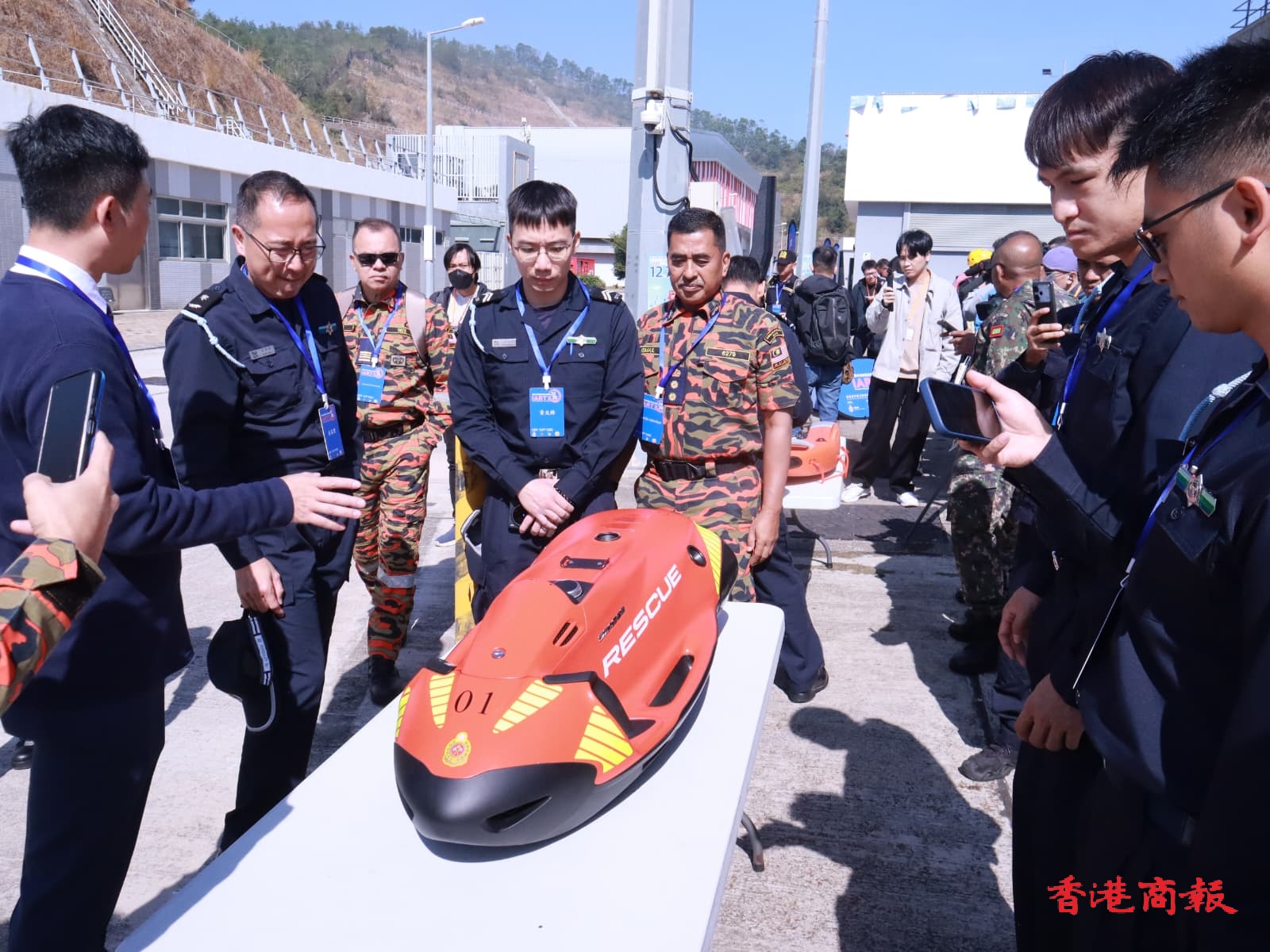 圖片說明:亞太地區相關水域的救援專家觀賞水下推進器。