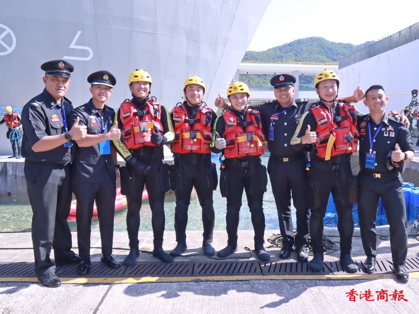 圖片說明:亞太地區相關水域的救援專家與進行示範的香港消防處人員合照。
