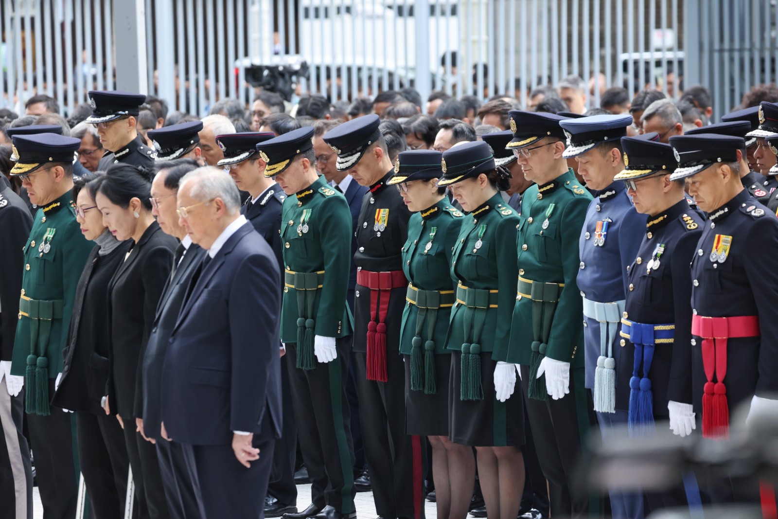 來港協助開展救災工作的中央港澳工作辦公室、國務院港澳事務辦公室分管日常工作的副主任徐啟方;中央港澳工作辦公室、國務院港澳事務辦公室副主任、香港中聯辦主任周霽;中央港澳工作辦公室、國務院港澳事務辦公室副主任農融也有出席參與默哀。