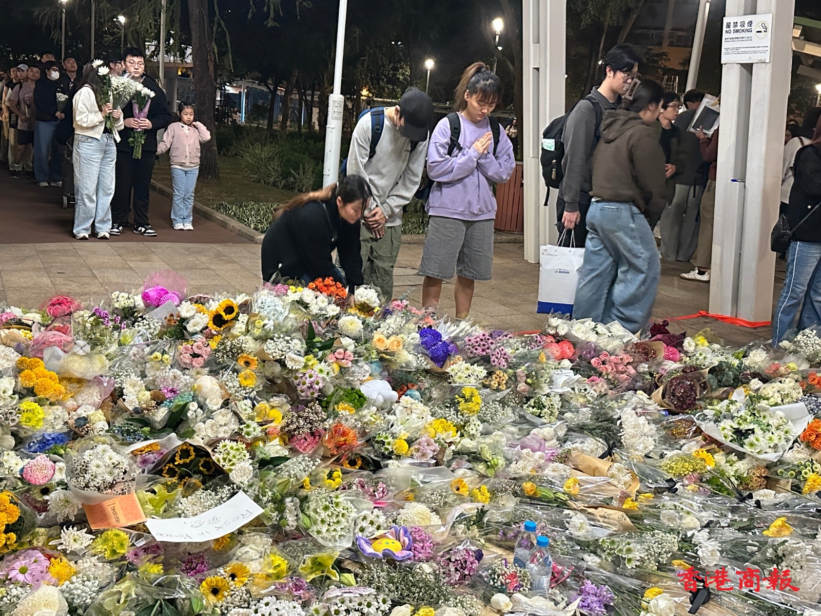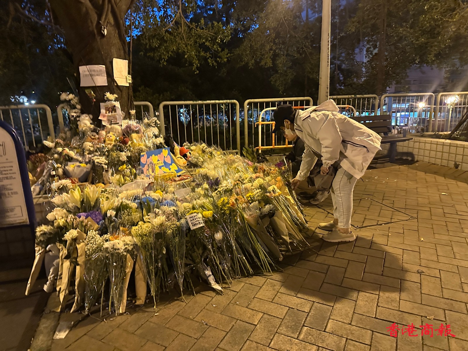 有片丨【宏福苑大火】辨認組未有發現 住戶期待安居 市民排長龍獻花 警方設記者休息區