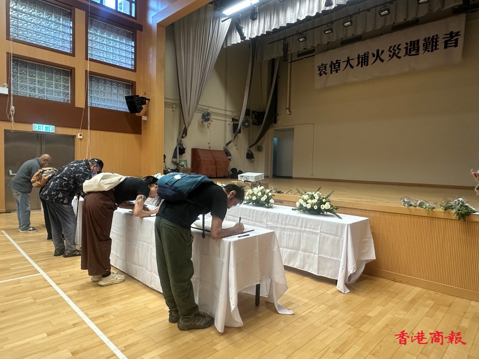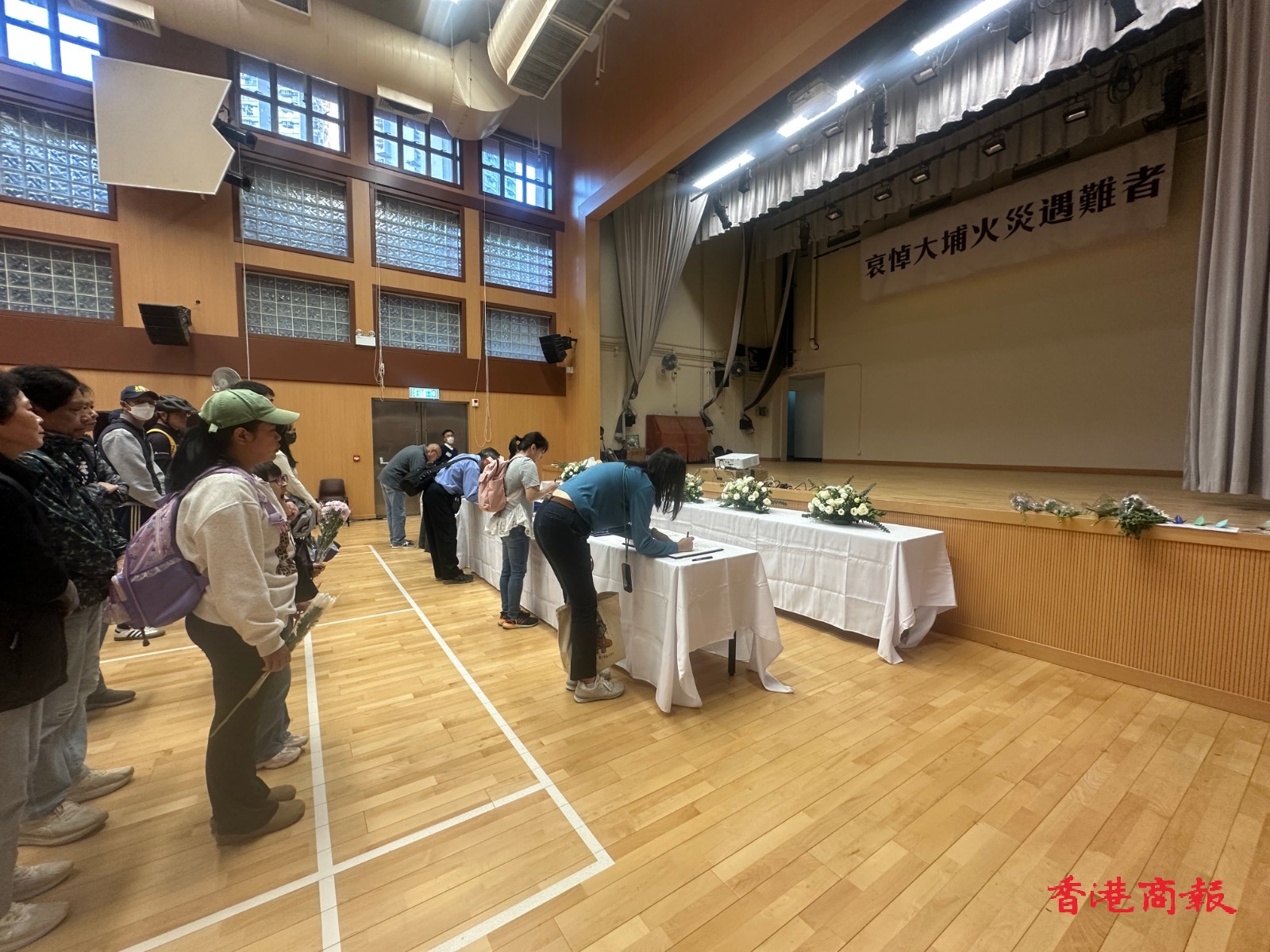 周末休息日,不少市民專門過來表達哀思或者看有什麼可以幫忙的。政府在18區都設立了弔唁處,離宏福苑最近的富亨邨弔唁處人最多,有不少是從其他區趕過來的,有七八十歲的老人家,專門從港島過海來表達一份心意。有不少父母帶着小孩一起來,給他們解釋發生什麼事情。