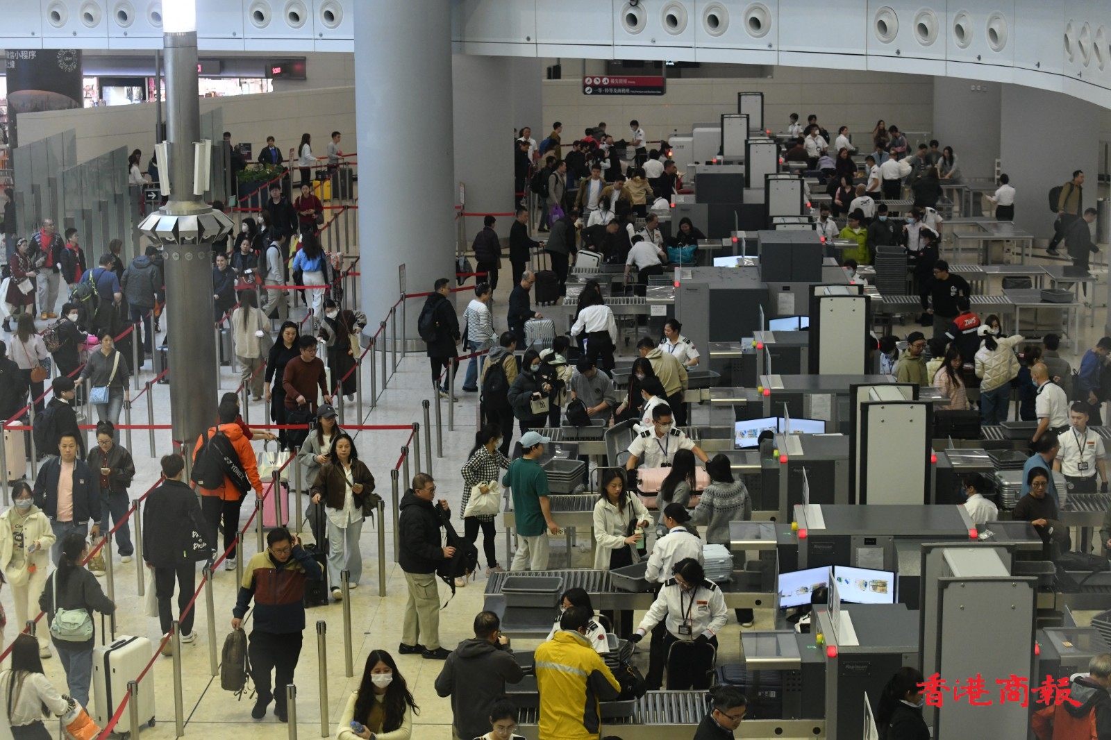 記者下午到西九龍高鐵站見到,出境的人流由早至晚都一浪接一浪。