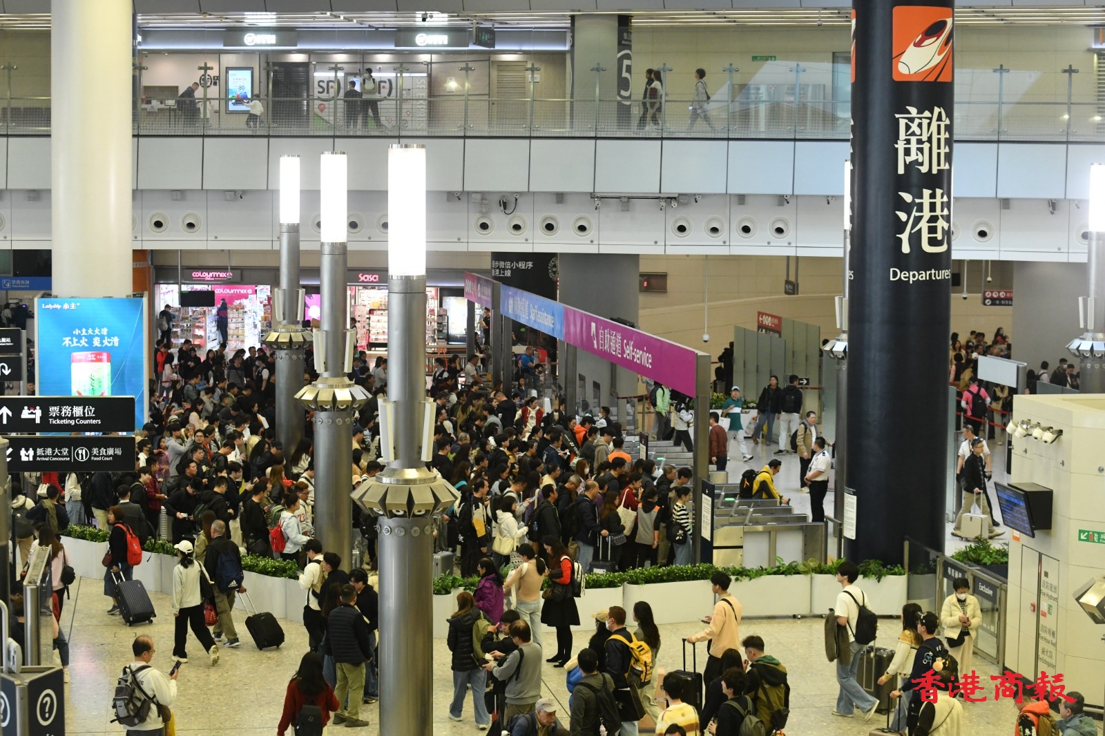 頂圖:記者下午到西九龍高鐵站見到,出境的人流由早至晚都一浪接一浪。