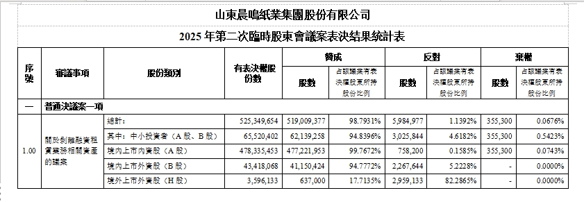 山東晨鳴紙業集團股份有限公司 2025年第二次臨時股東會決議公告