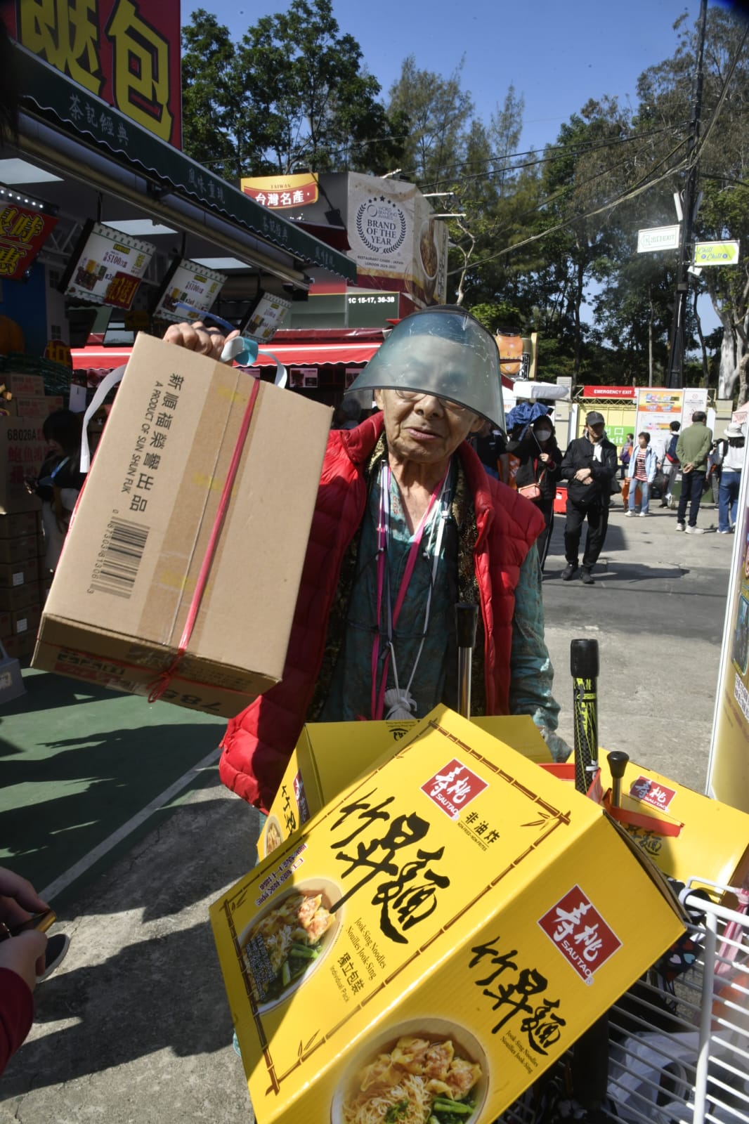 市民盧女士和丈夫黃先生,趁人流不多的時候入場購物,兩人預算四千多元「掃貨」,購買鮑魚、臘腸、湯包以及健康飲品。盧女士覺得湯包最為划算,210元有七包,會待農曆新年時煮給家人食用。市民陳伯伯斥資三千多元,購買鮑魚、多盒竹昇麵,他覺得竹昇麵價錢比市面上便宜,五十多元一盒,故特意購買回家享用。(記者 葉家亨/攝影 蔡啟文)