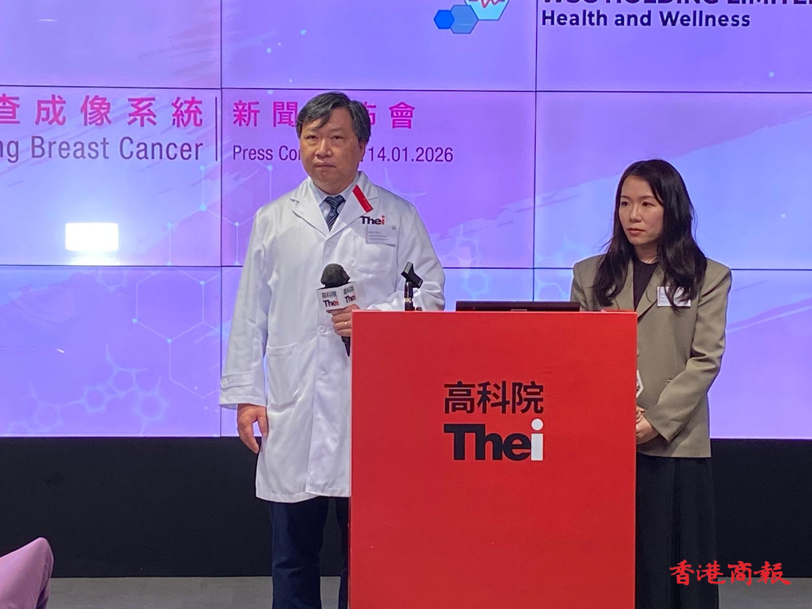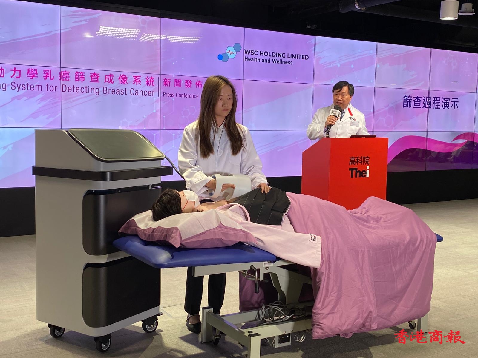 THEi 高科院食品及健康科學學系主任陳舜宏博士解釋系統操作,指篩查人員會將探測儀置於女性乳房上,通過近紅外線訊號技術在15分鐘內獲得成像回饋。他表示:「這研發在識別潛在乳癌組織檢測上有重大突破,計劃建立女性乳房血液動力學數據庫,以高效評估癌症風險並輔助醫療決策。因這項新技術的篩選成本低於現有篩查方法,期望推廣至社區,讓更多女性及早發現乳房病變,擴大治療窗口,減低公共醫療體系的壓力。」