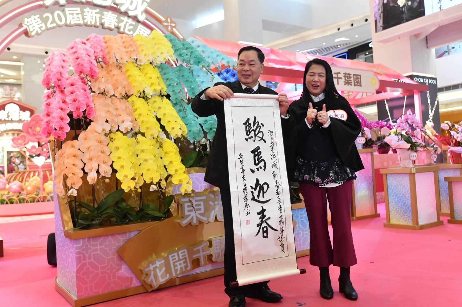 農曆新年將至,為方便市民提早購買年花過節,以及率先掌握新春花卉市場趨勢與消費動向,將軍澳東港城連續第20年與花卉名家攜手合作,包括香港蘭花大王—「千葉園」創辦人楊小龍及其兒子、新一代蘭花才子楊尹俊,以及香港年花大王—香港鮮花盆栽批發商會主席賴榮春,今日(20日)在東港城舉行第20屆新春花展會「花開千駿迎新春」揭幕禮,展覽匯聚逾百種賀年花卉,打造成為一站式購物熱點。今年展覽展期由明日(21日)開始,直到下月16日,在東港城一樓中庭舉行,開放時間為早上11時,直至晚上9時。