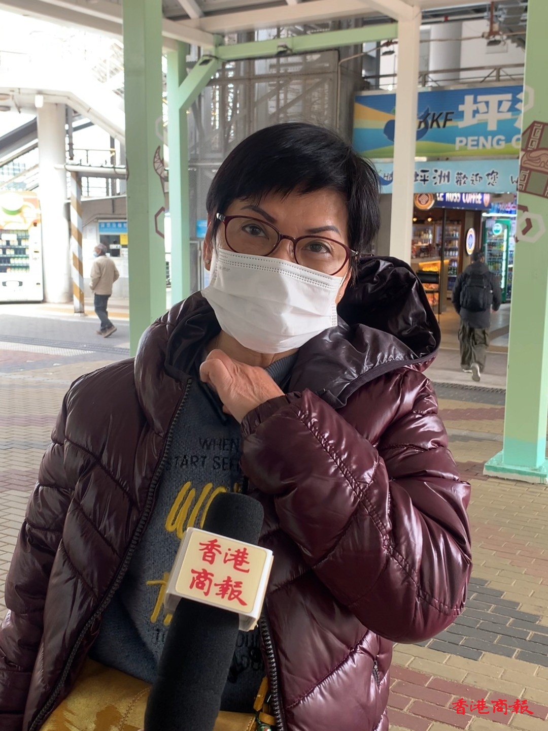 坪洲居民李小姐今天故意穿了保暖內衣、平時不會穿的加厚羽絨服以及厚襪。她說:「今天天氣比預期中無咁凍,我踩單車去碼頭時也不是很大風,無須包頭,今天穿多了也無所謂,可以脫。」