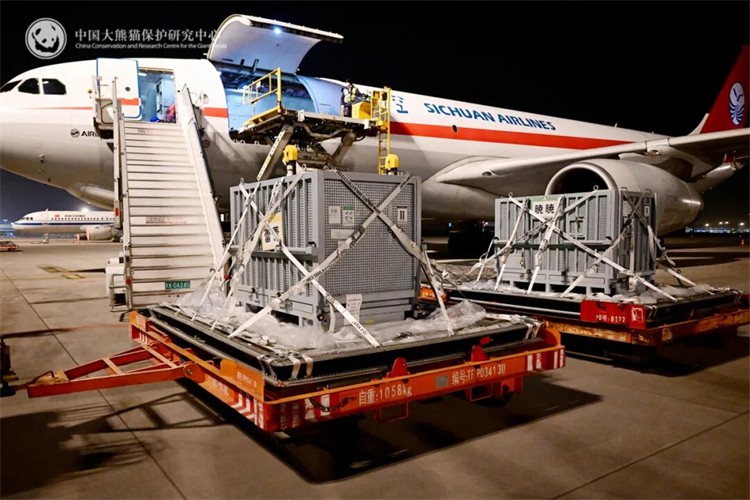 旅日大熊貓「曉曉」「蕾蕾」抵達成都。
