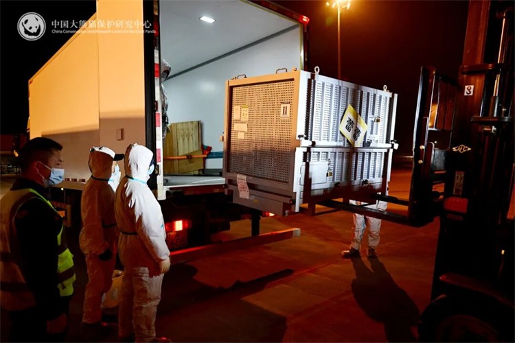 旅日大熊貓「曉曉」「蕾蕾」裝運上車。