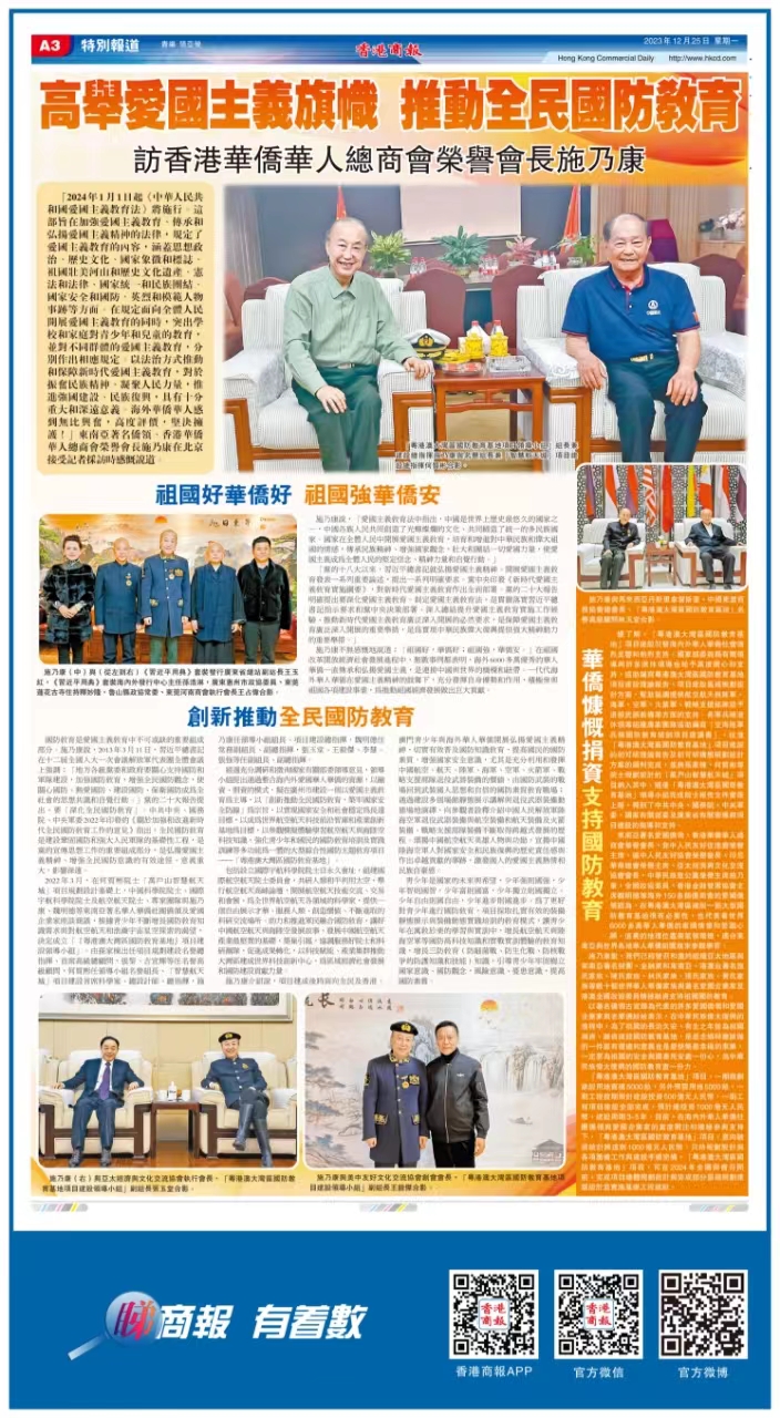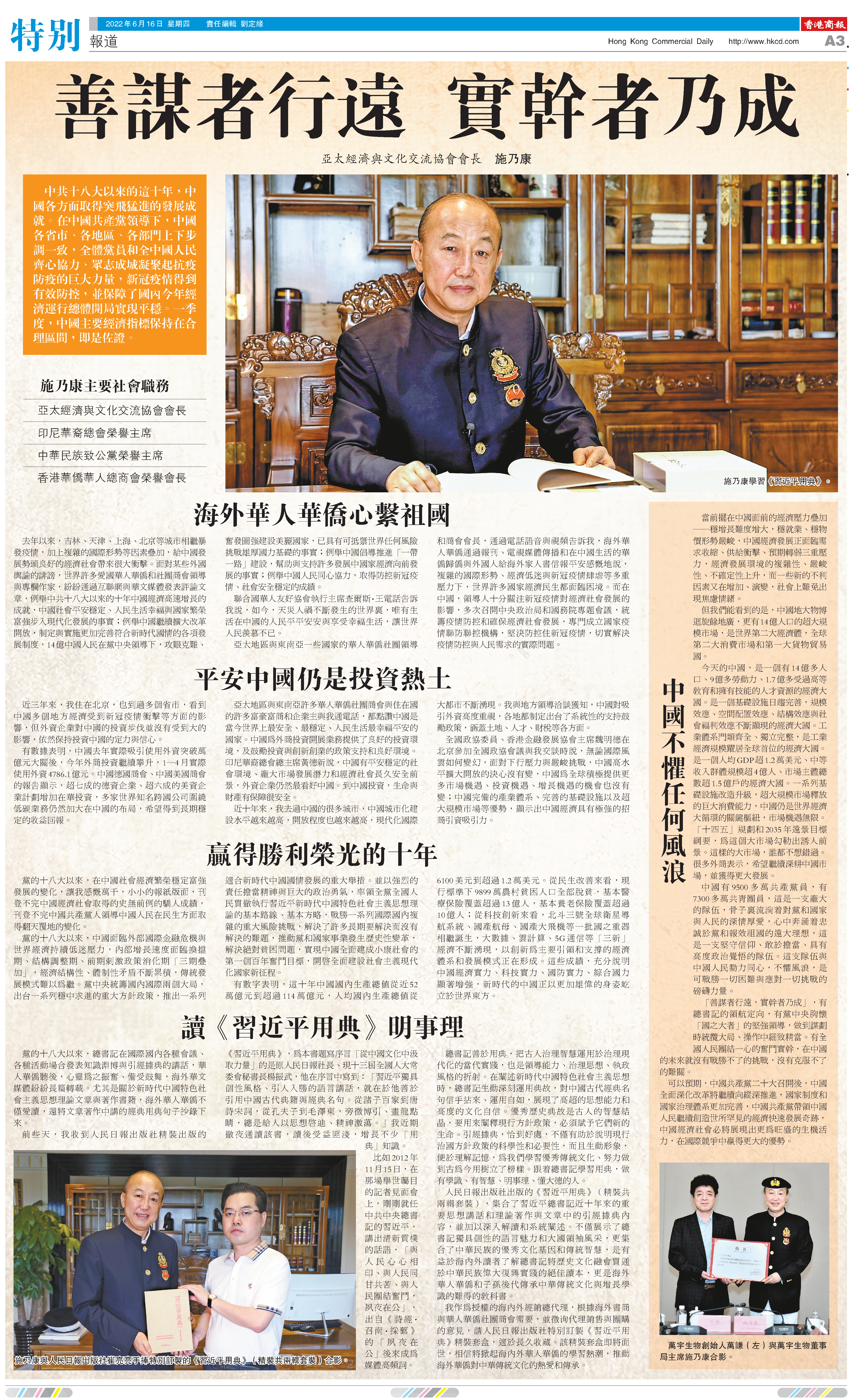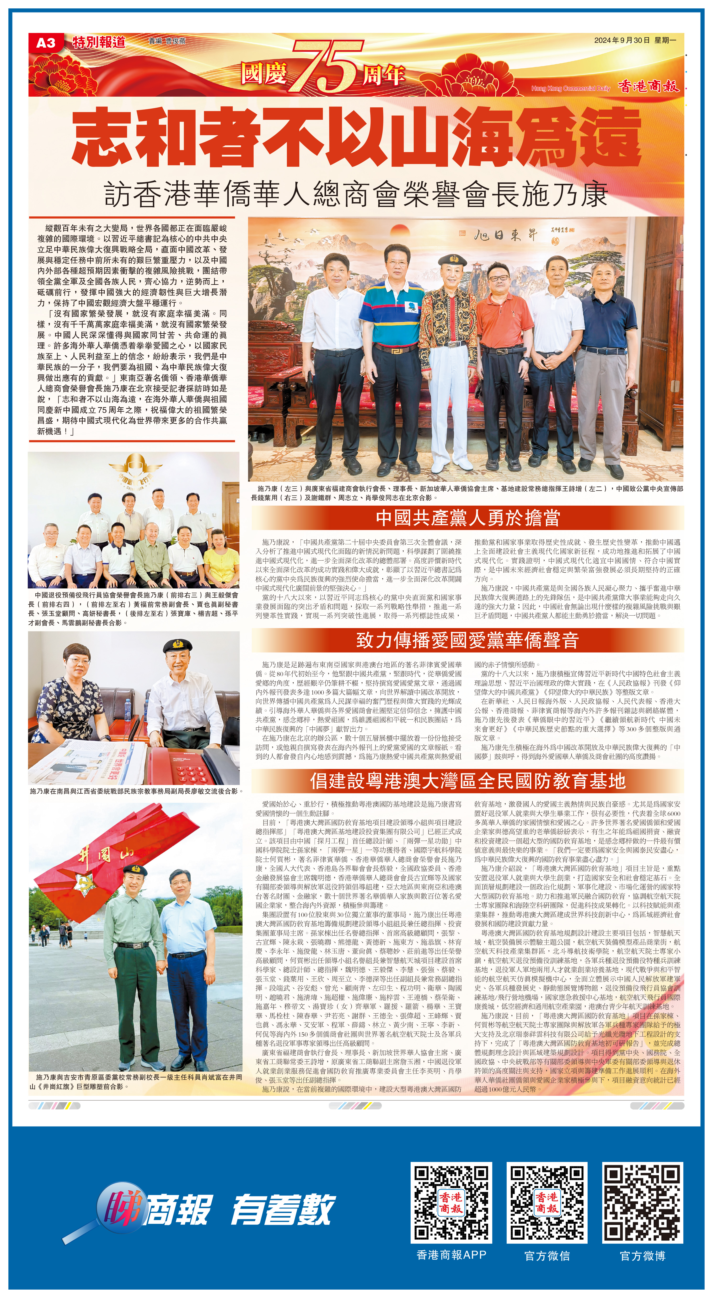 惟願山河錦綉國泰民安——訪香港華僑華人總商會榮譽會長施乃康