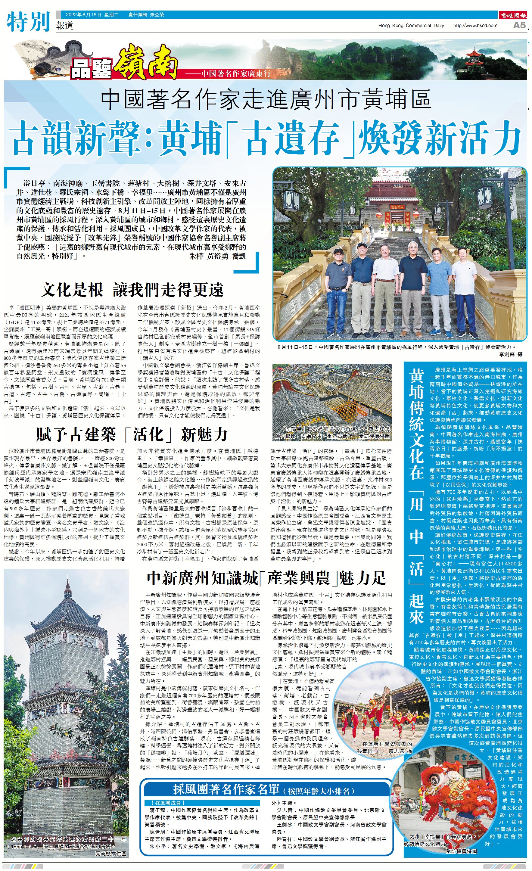 中國著名作家走進廣州市黃埔區 古韻新聲:黃埔「古遺存」煥發新活力