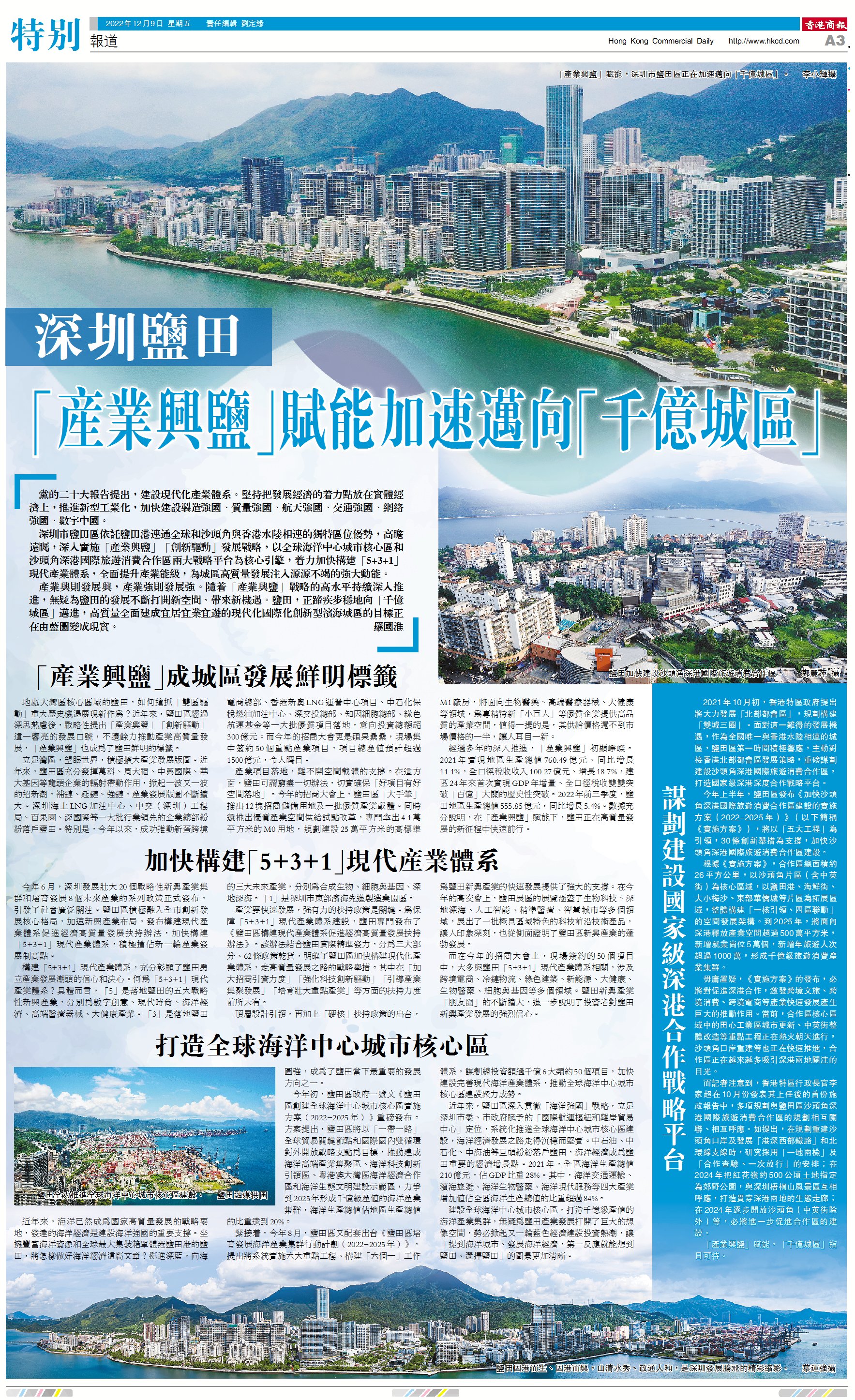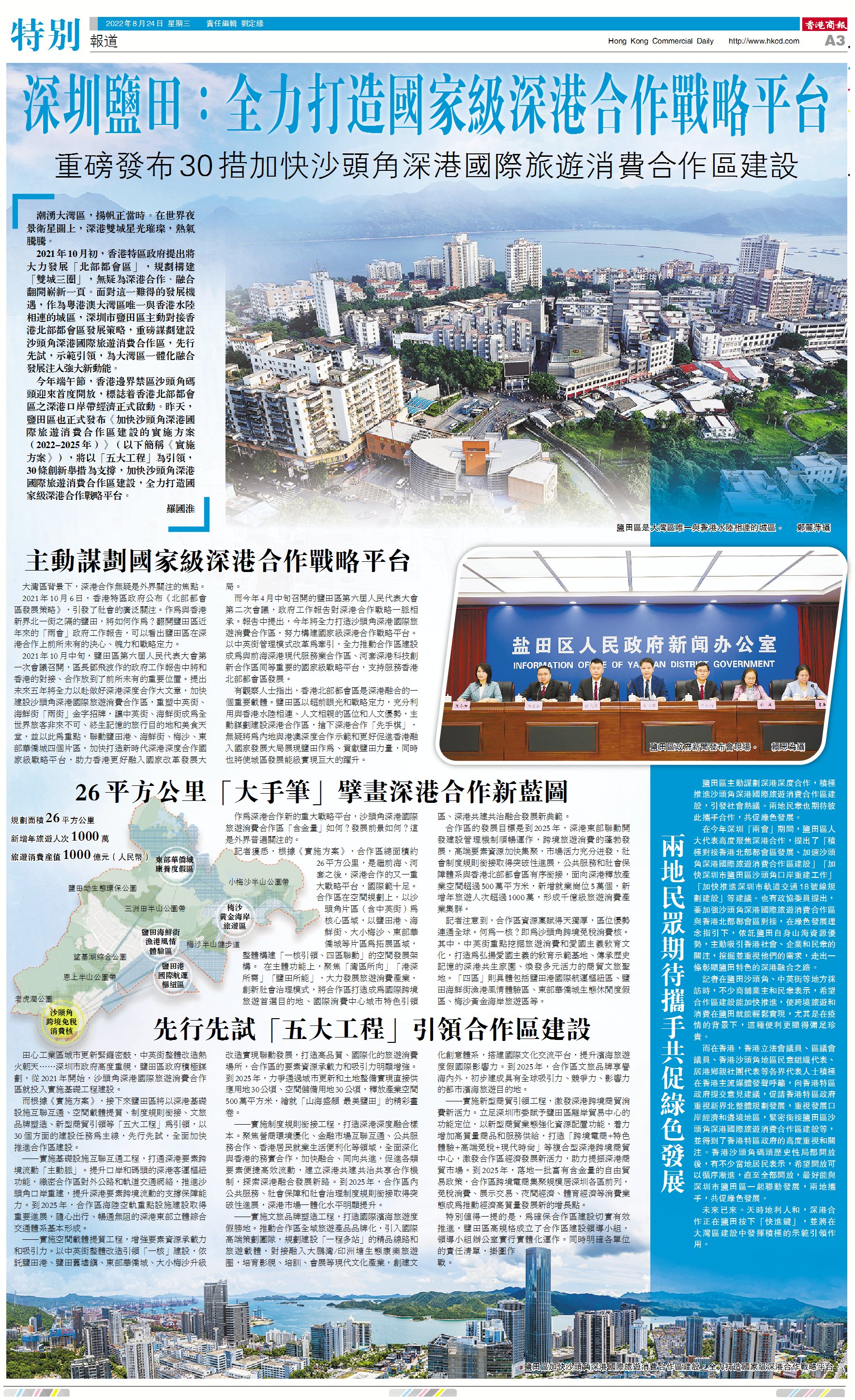 深圳鹽田 做好深港合作大文章 打造「深港合作範例」