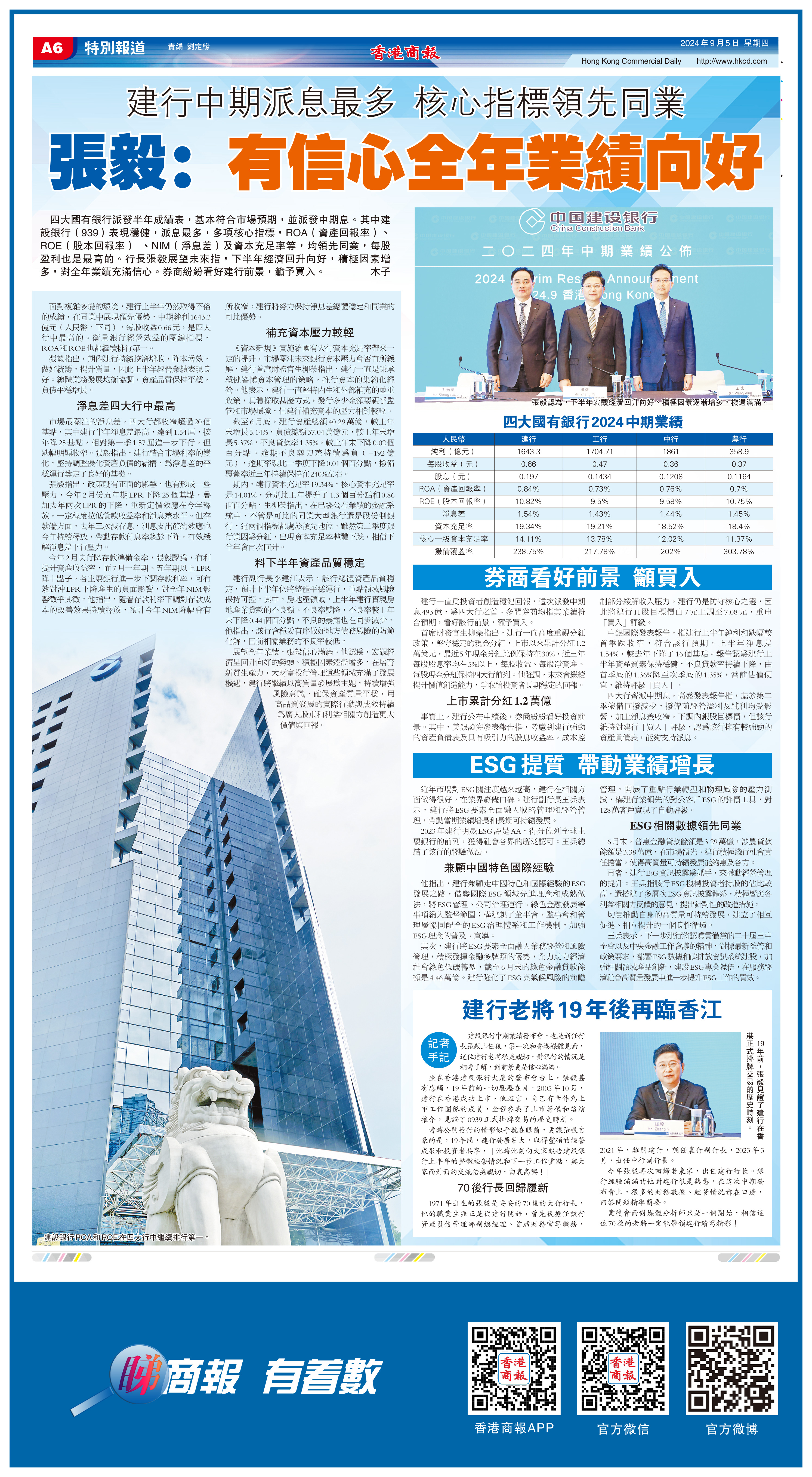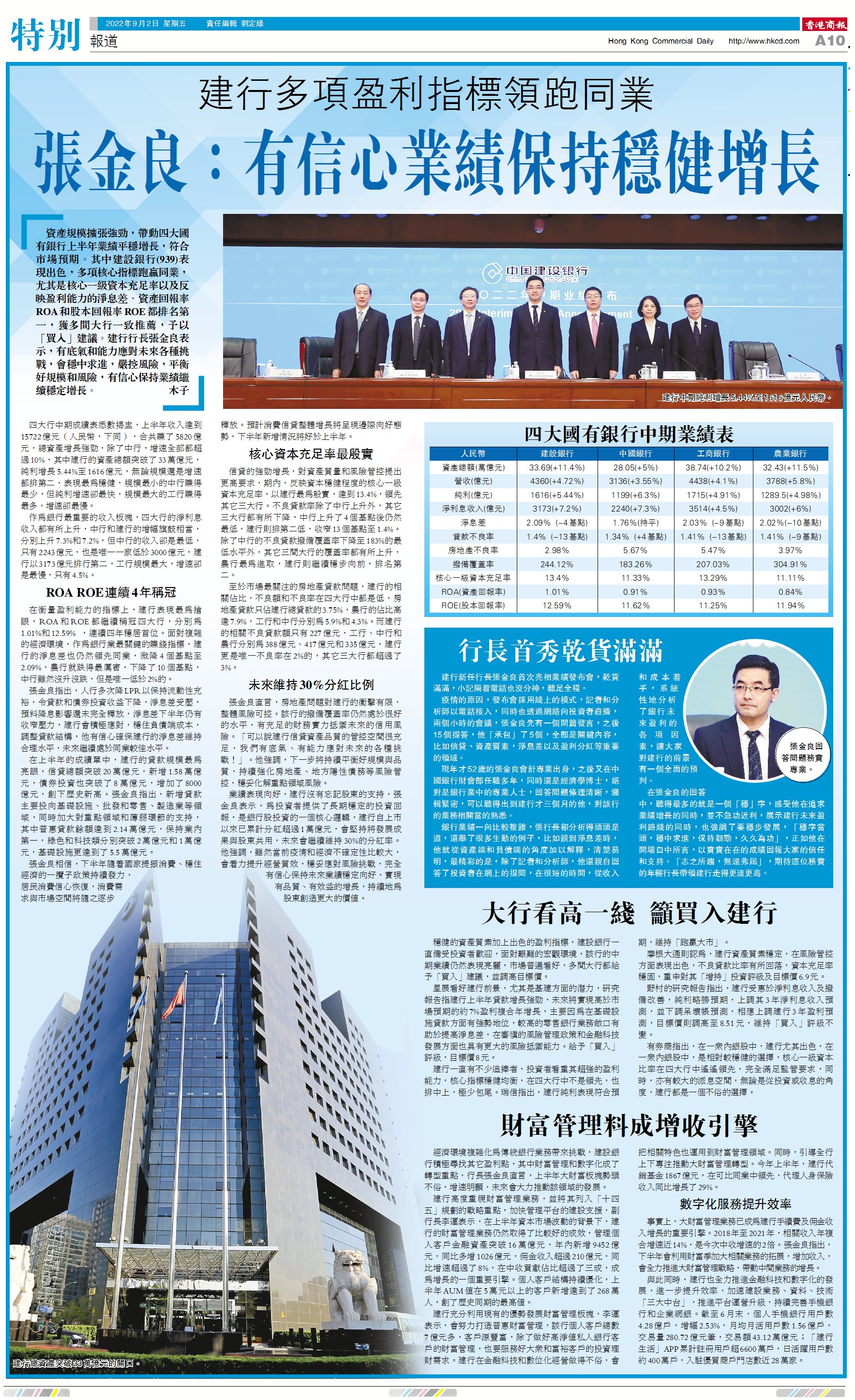 建行多項盈利指標領跑同業 張金良:有信心業績保持穩健增長