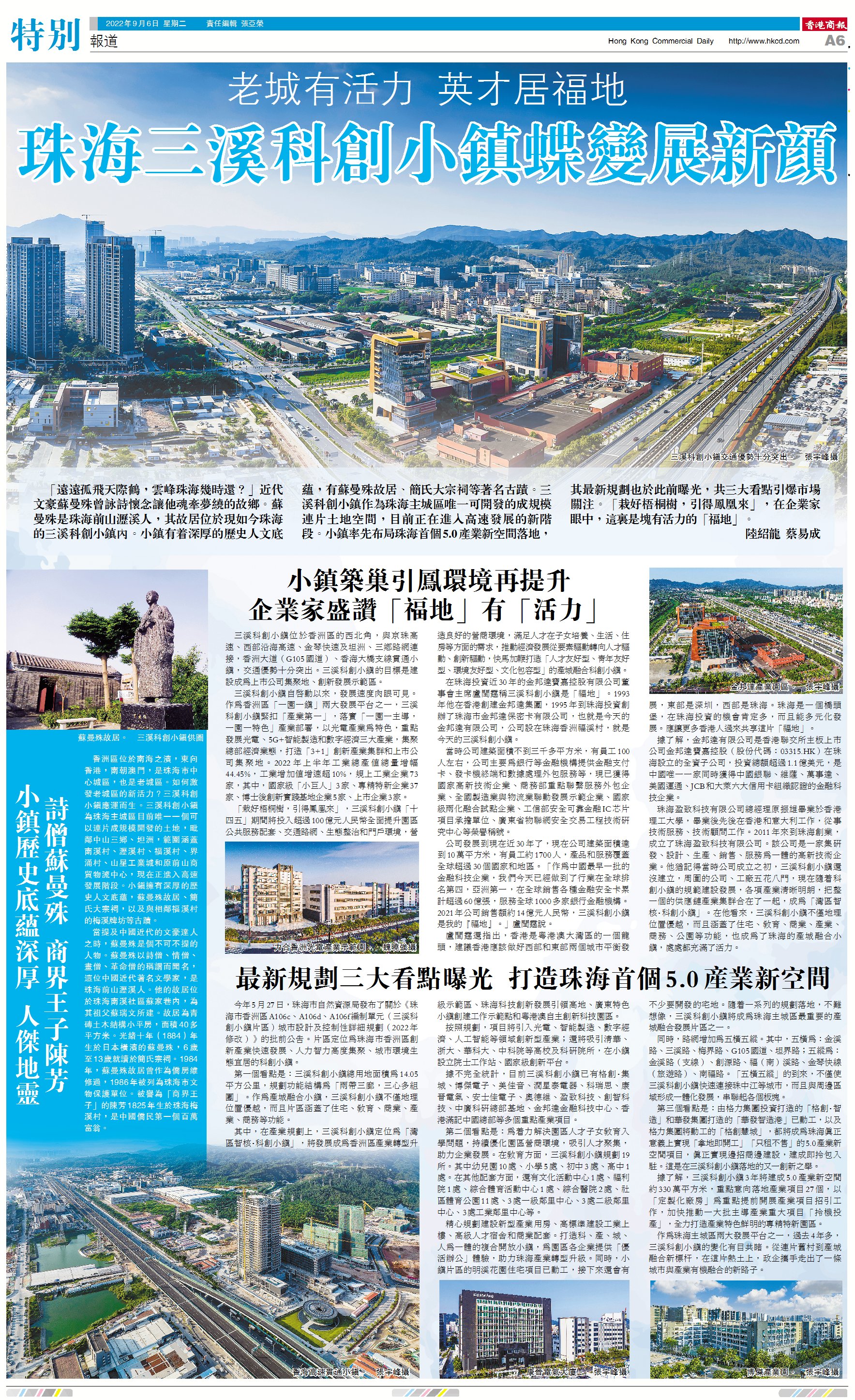 老城有活力 英才居福地 珠海三溪科創小鎮蝶變展新顏