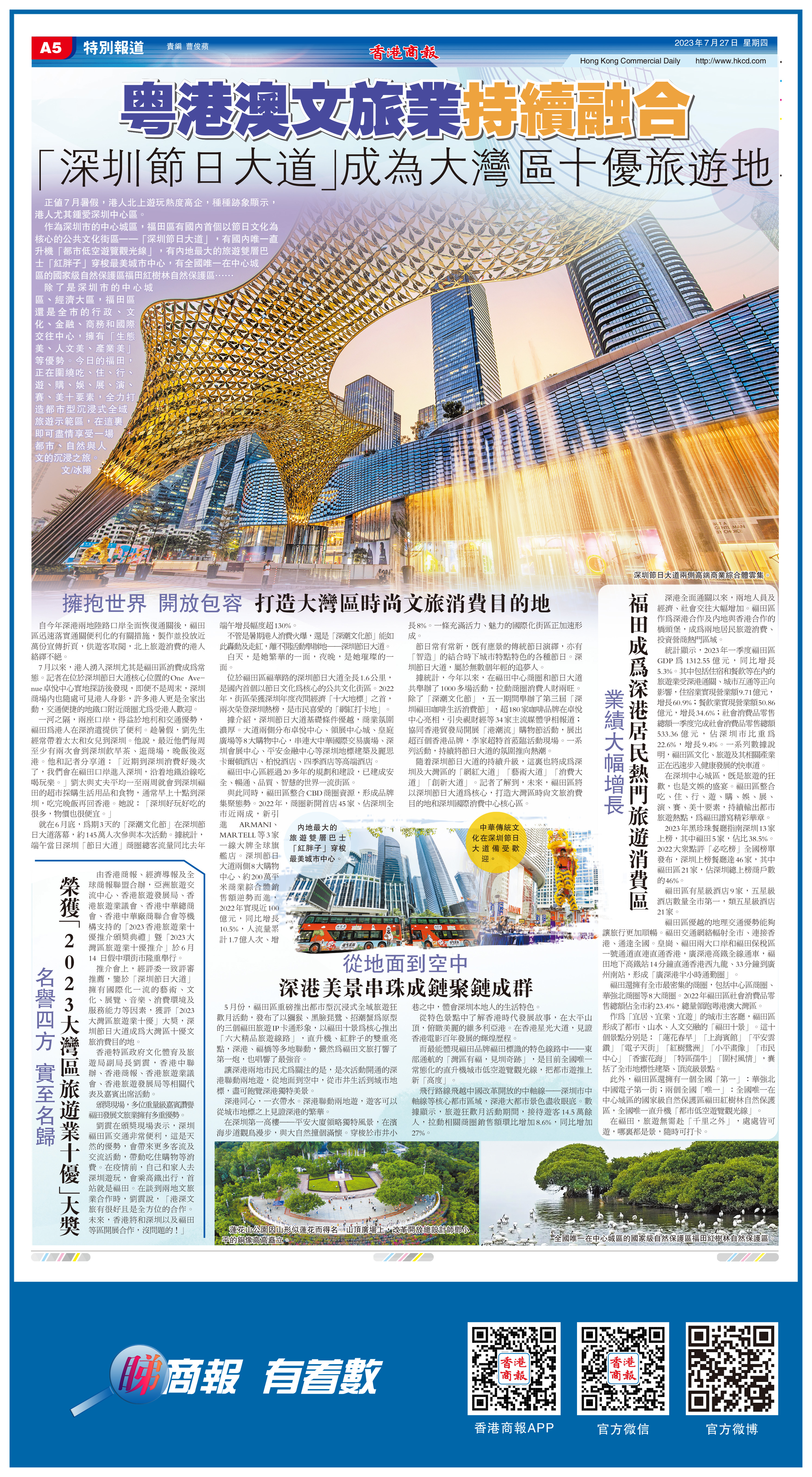 融合全球文旅資源 持續進階迸發活力 深圳中心區邁步世界級文旅商圈