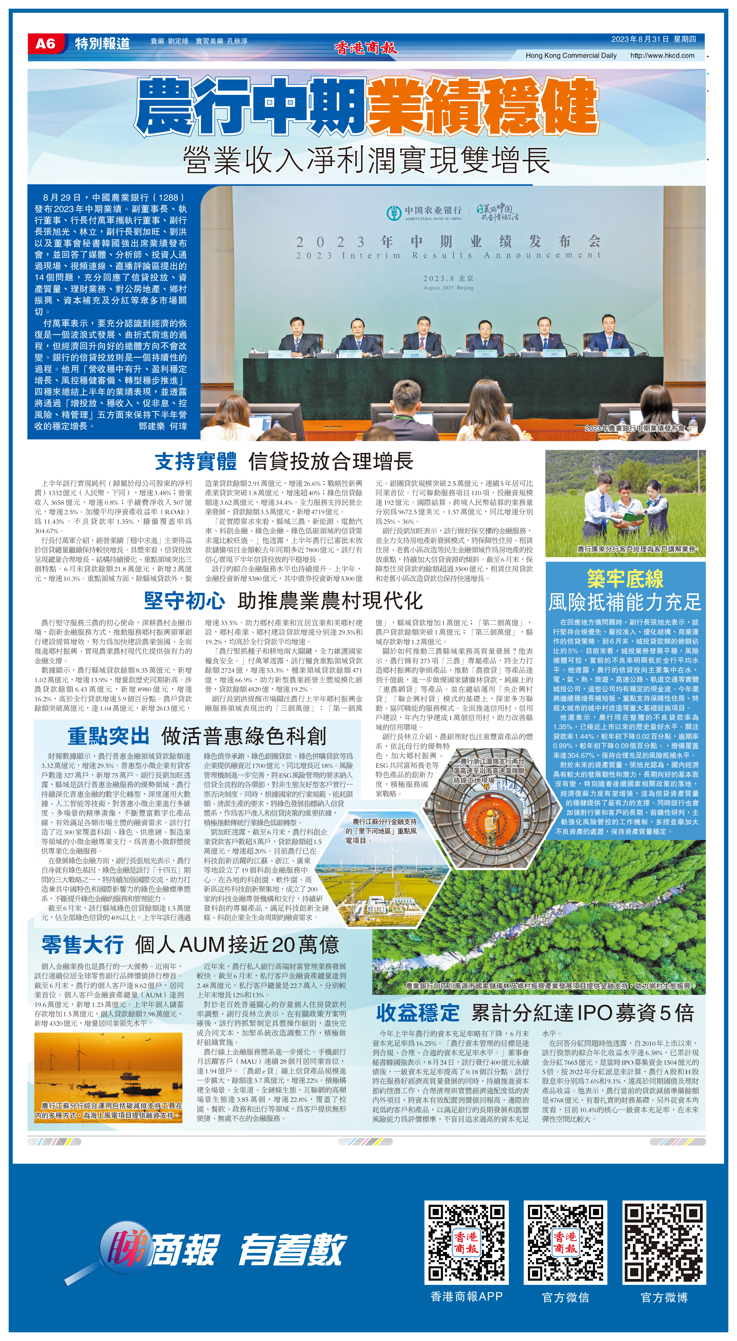 扎根香港三十載 農業銀行 搭建粵港澳大灣區金融橋樑