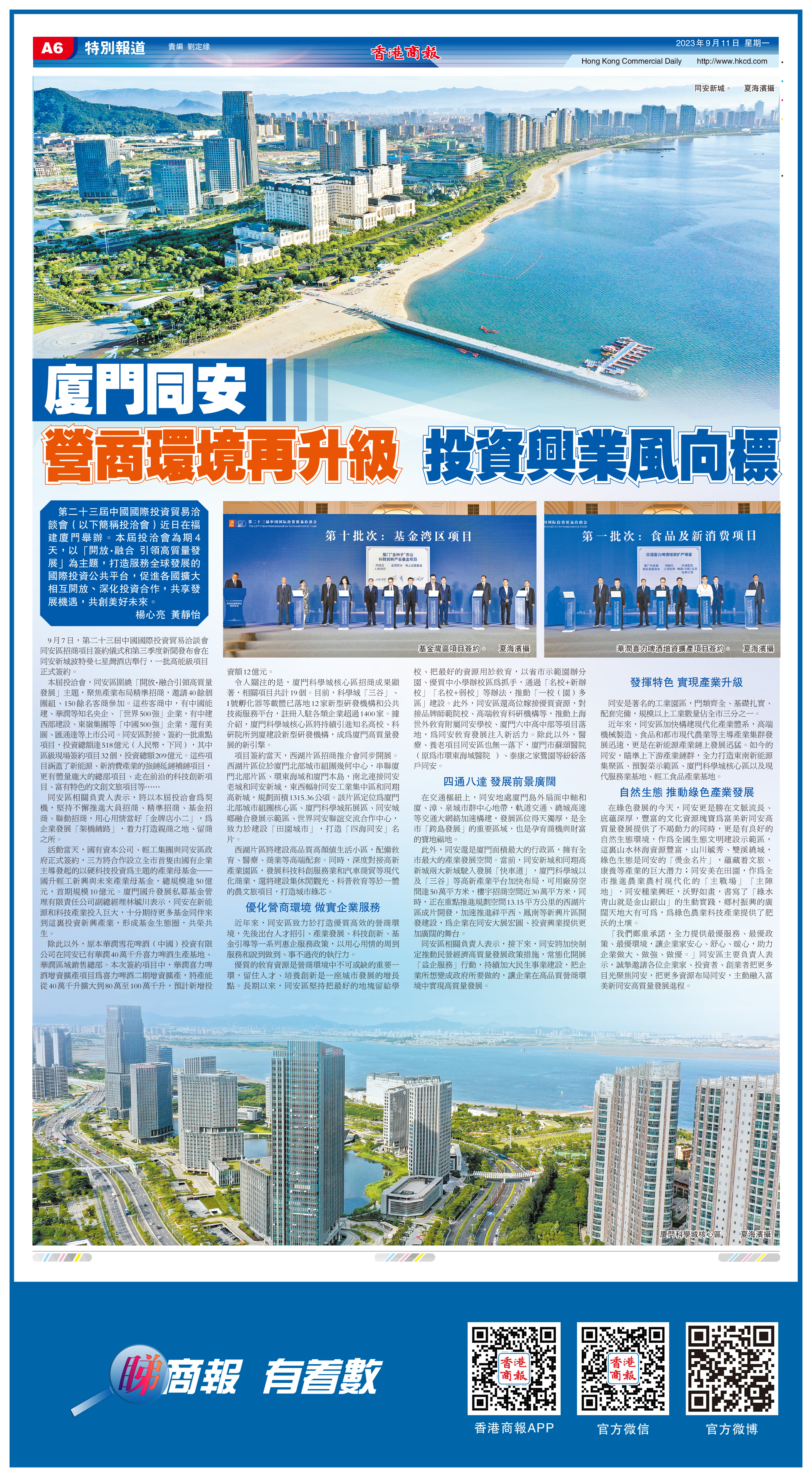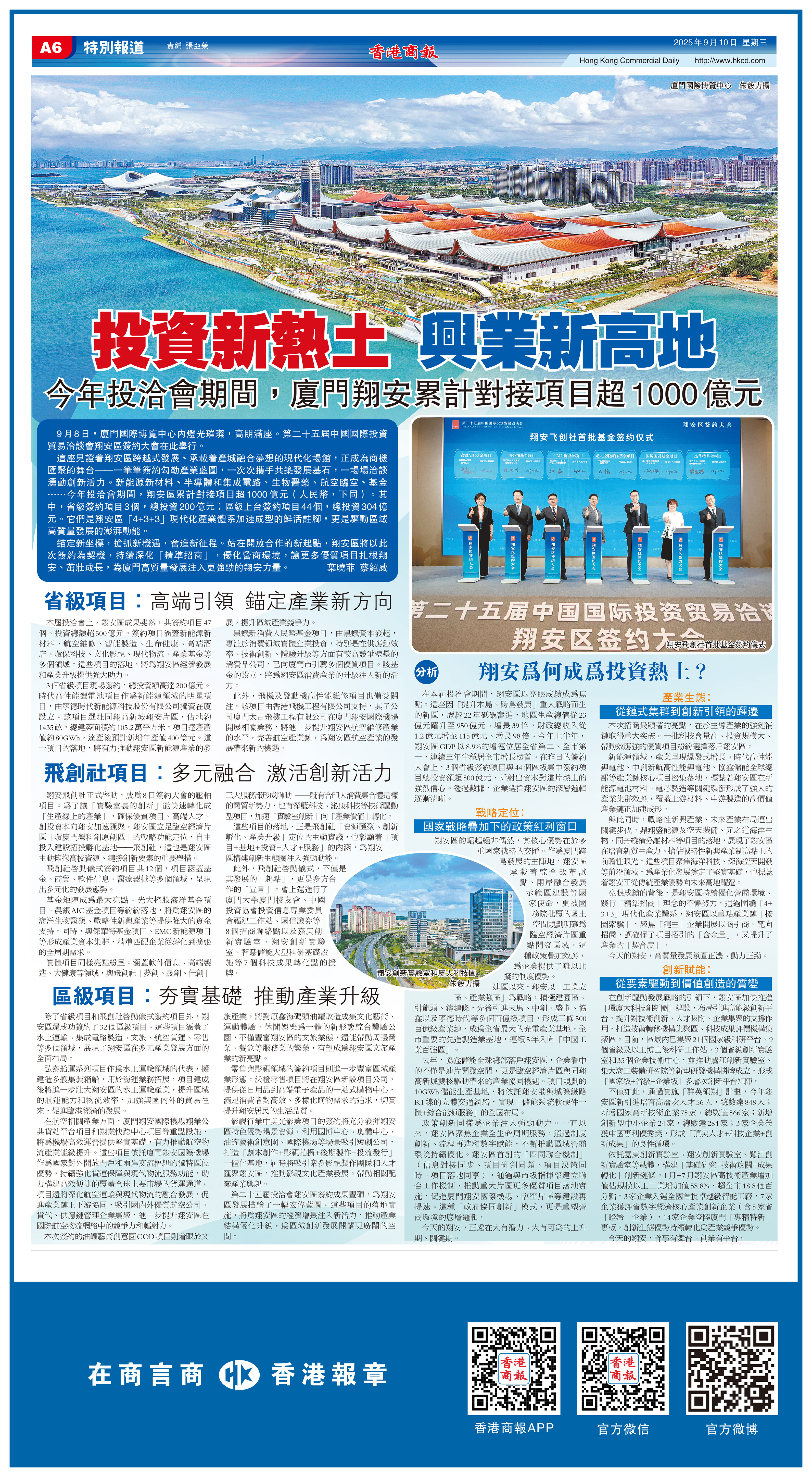 投資新熱土 興業新高地 今年投洽會期間,廈門翔安累計對接項目超1000億元
