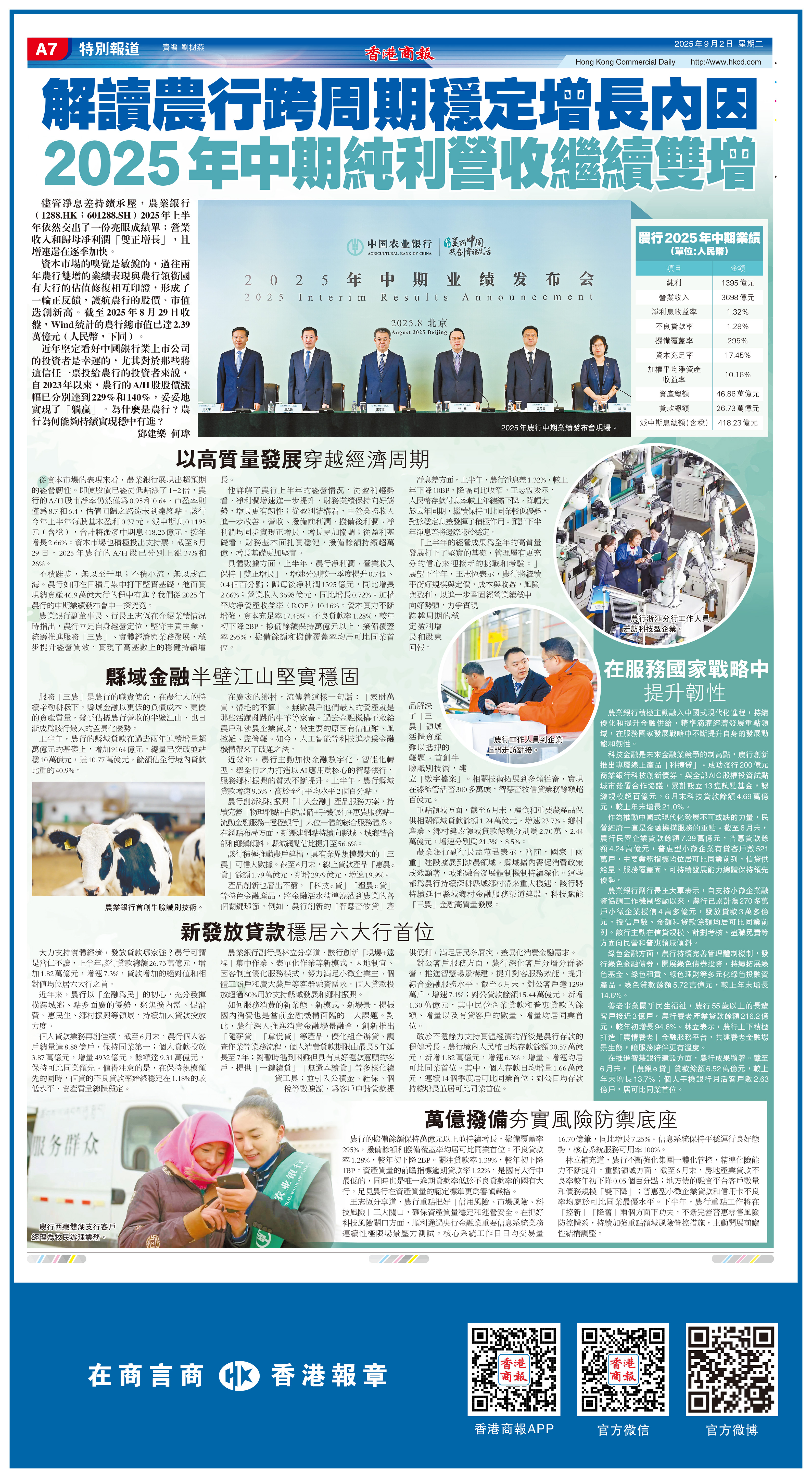 解讀農行跨周期穩定增長內因 2025年中期純利營收繼續雙增