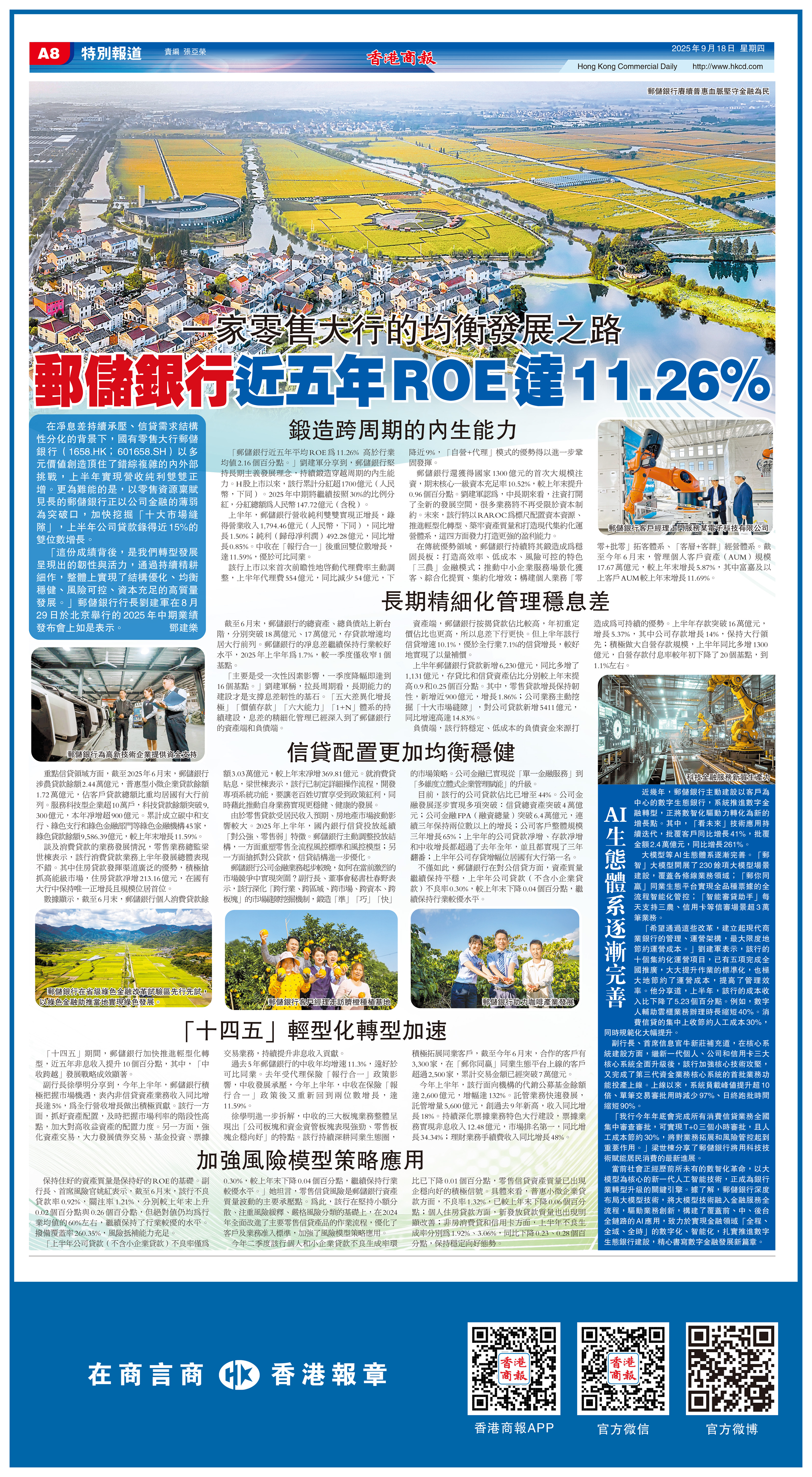 一家零售大行的均衡發展之路 郵儲銀行近五年ROE達11.26%