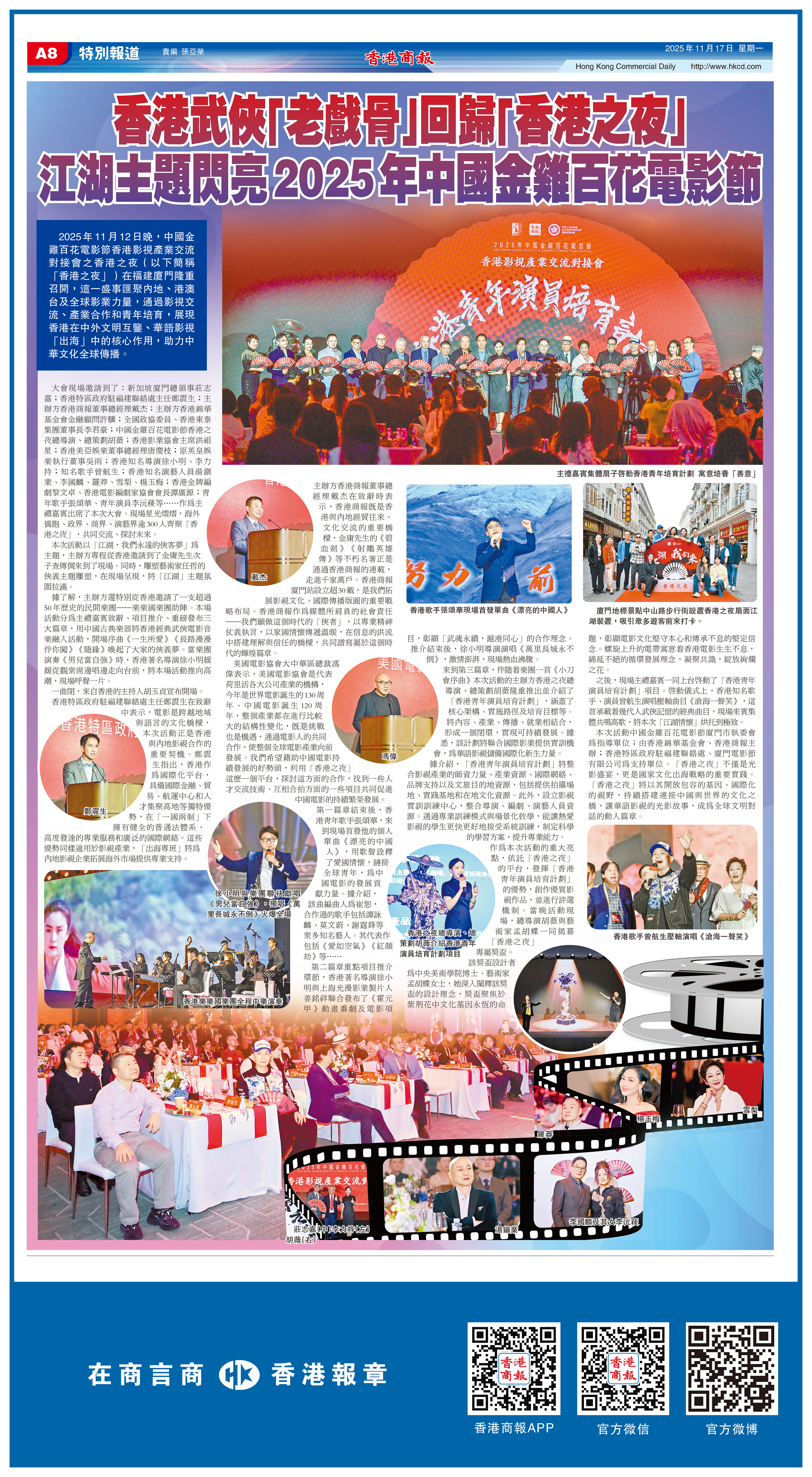 香港武俠「老戲骨」回歸「香港之夜」 江湖主題閃亮2025年中國金雞百花電影節