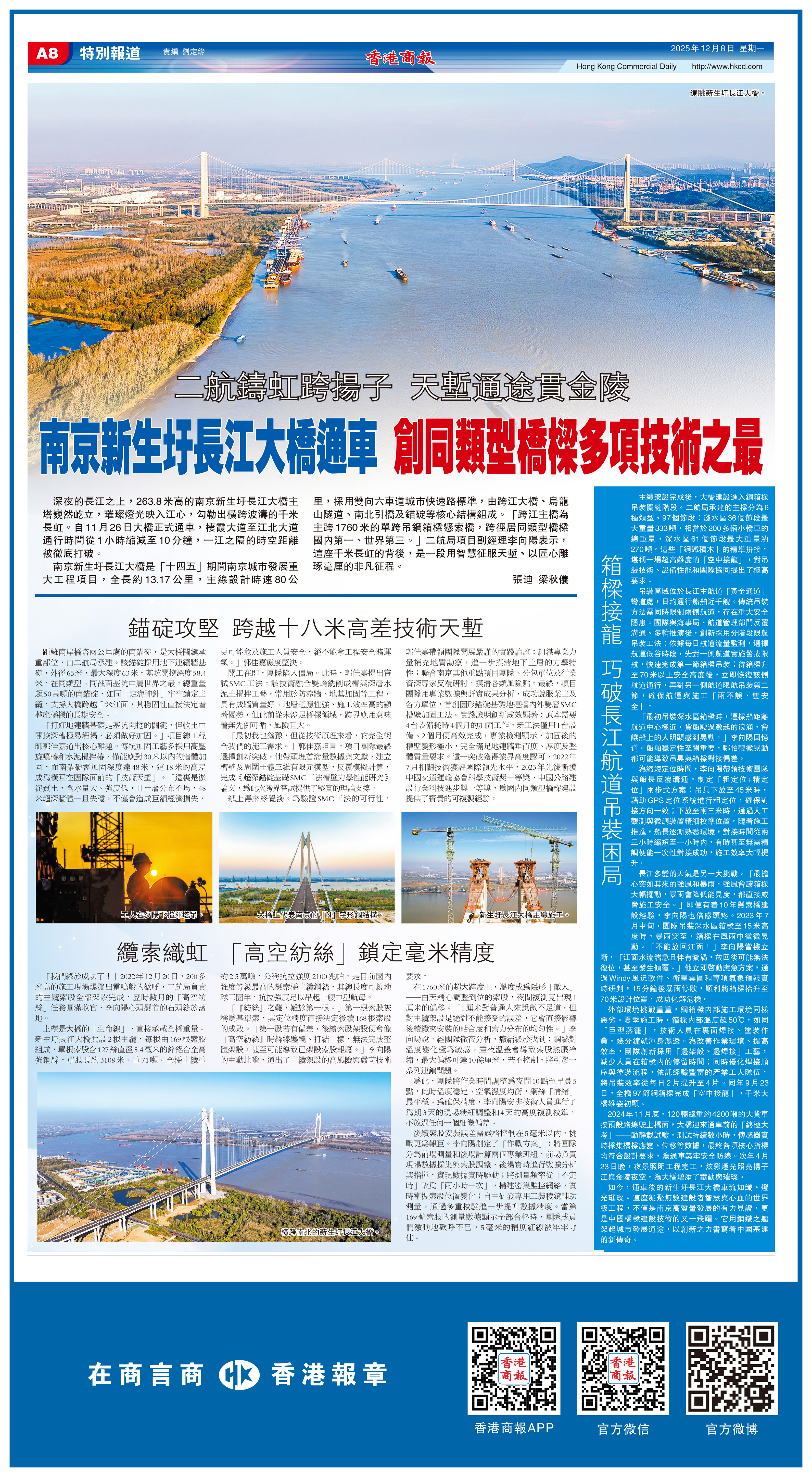 二航鑄虹跨揚子 天塹通途貫金陵 南京新生圩長江大橋通車 創同類型橋樑多項技術之最