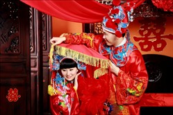 古時候舉行婚禮時,新娘頭上都會蒙著一塊別致的大紅綢緞,被稱為紅蓋頭,入洞房時由新郎揭開。最早的蓋頭出現在南北朝時的齊代,當時是婦女避風寒用的,僅僅蓋住頭頂。到唐朝初期,便演變成一種從頭披到肩的帷帽,用以遮羞。據傳說唐朝開元天寶年間,唐明皇李隆基為了標新立异,有意突破舊習,指令宮女以「透額羅」罩頭,也就是婦女在唐初的帷帽上再蓋一塊薄紗遮住面額,作為一種裝飾物。從后晉到元朝,蓋頭在民間流行,并成為新娘不可缺少的喜慶裝飾。為了表示喜慶,蓋頭都選用紅色的。