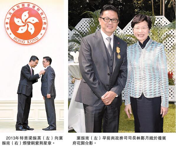 葉振南,榮興利國有限公司主席,盈富信貸有限公司主席。獲銅紫荊星章,榮譽勳章,香港太平紳士稱號。
