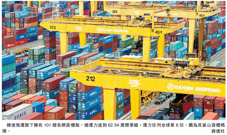 韓國「聯合通訊社」昨天報道,韓國政府將提出由現代商船收購韓進海運部分資產。現代商船為韓國第二大航運企業,其早前亦被國營韓國產業銀行為首的債權人接管,以進行重組。韓國金融監督委員會副主席鄭殷波表示,有關建議是試圖避免韓國航運業界失去競爭力。他又指出,航運是韓國重要產業,外界憂心韓進遭接管后,航運業競爭力會大減,當局將敦促現代商船收購韓進海運資產,此舉被視為兩家公司進行實質合併。