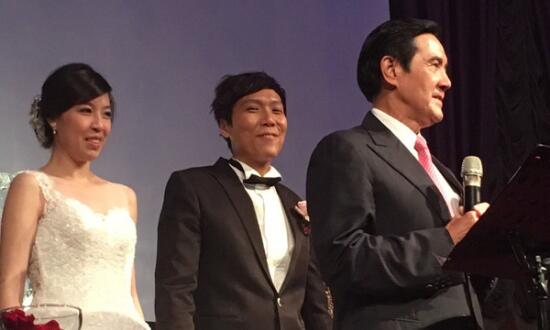 马英九(右)25日晚间受邀为一对媒体人证婚。(图片来源:台湾《联合报》)