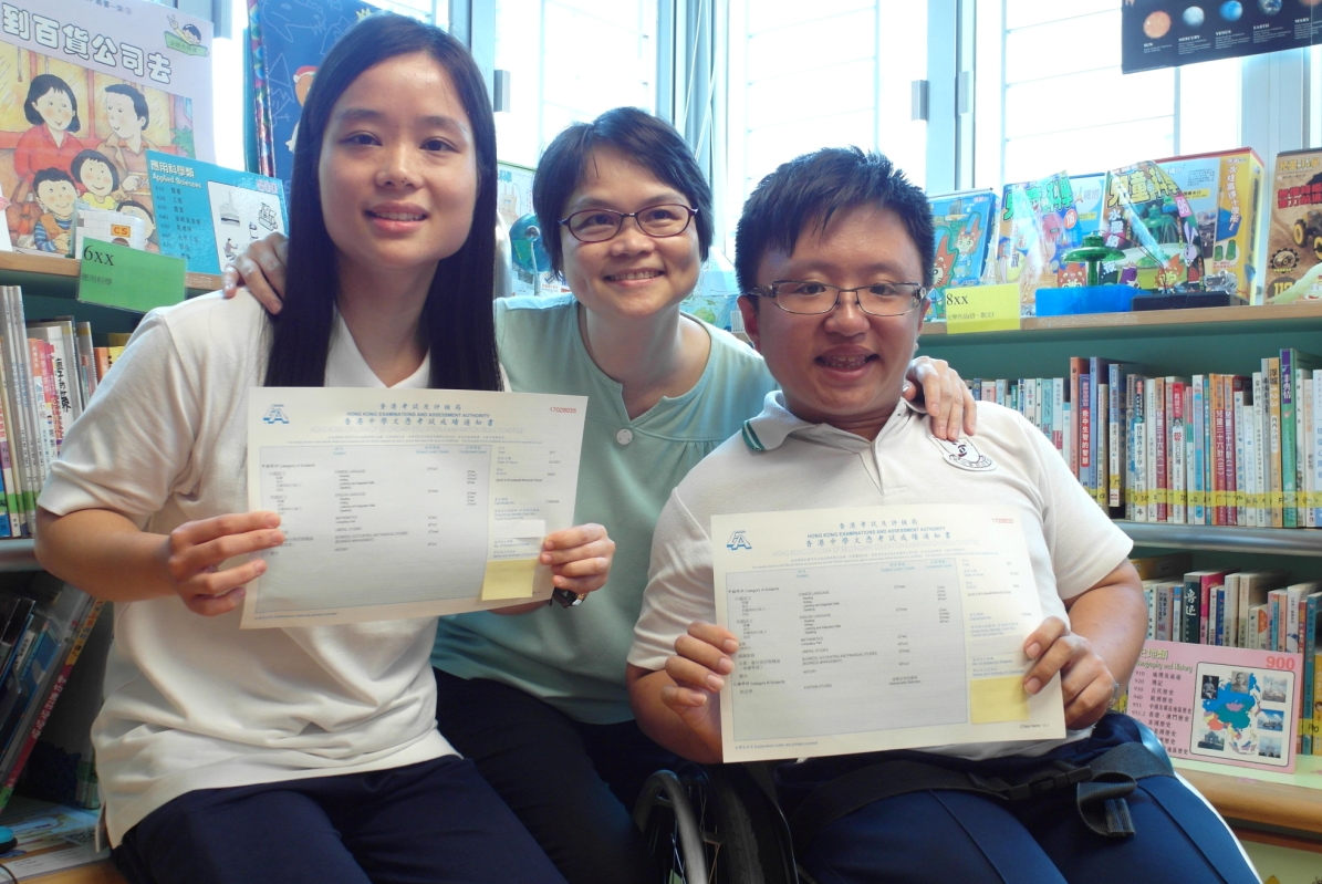 【香港商報网訊】實習記者黃顯詩報道:年輕人源源不絕的求知慾,足以戰勝病魔的重重枷鎖。就讀香港耀能協會羅怡基紀念學校的麥秀雯同學和老智航同學,在付出比一般人還要多不知多少倍的努力下,終於在今屆中學文憑考試獲得理想成績,老師及家人均感欣慰。