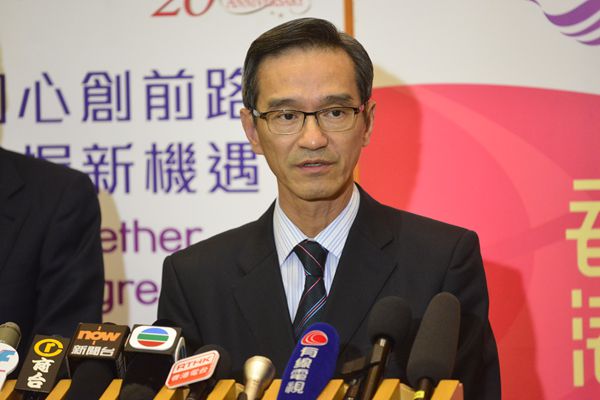 土地供應專責小組主席黃遠輝會議後見記者。