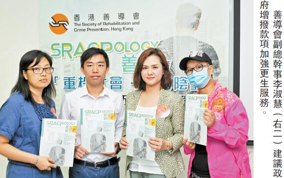 香港善導會副總幹事李淑慧表示,目前社會福利署的財政支出報告,給予違法者服務資助金額只按恒常通脹調整增加,遠遠滿足不了實際需要,該會倡議政府應針對性投放資源於協助更生人士重投社會及預防重犯的工作,藉以減低由重犯所帶來的龐大社會代價,並每年增撥最少百分之五至六的資助金額加強更生服務,尤其針對更生人士於家庭重建、情緒支援、正常社交建立配套等需要。