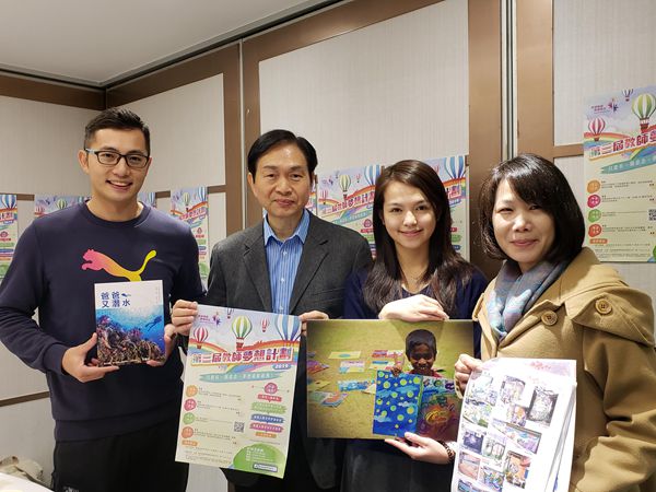 香港教師夢想基金主席連文嘗(左二)與中學教師郭燕銘(右一)介紹有關計劃。記者 潘仲男攝