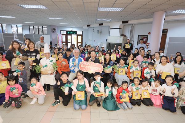 名廚馬榮德師傅教小孩「刨蘿蔔」,場面溫馨。
