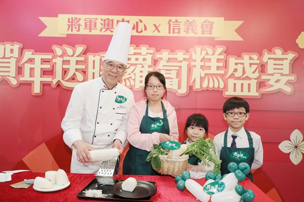 現任香港中廚師協會會長馬榮德師傅於活動上邀請出席的小朋友上台學「刨蘿蔔」,並即席示範煎蘿蔔糕,也為現場家庭獻上100底足料海味蘿蔔糕,讓眾人享受了一席暖意洋溢的蘿蔔糕茶會。