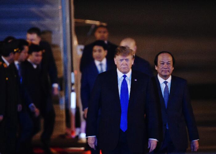 美国总统特朗普26日晚抵达越南首都河内,将参加27日至28日在河内举行的美朝领导人第二次会晤。 新华社发 (王申 摄)