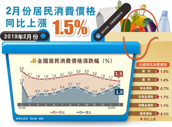 【香港商報网訊】中國國家統計局昨日發布今年2月份全國CPI(居民消費價格指數)和PPI(工業生產者出廠價格指數),數據顯示,2月份,CPI同比上漲1.5%,漲幅比上月擴大0.5個百分點,同比漲幅為連續三個月處於「1時代」;PPI同比上漲0.1%,環比下降0.1%。對此,國家統計局城市司處長董雅秀進行了解讀。