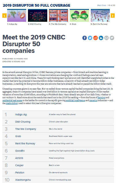 以下为CNBC评出的全球“颠覆者50强”榜单: