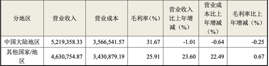 ▲ 海尔智家2019年半年报中国大陆地区、其他国家/地区营收