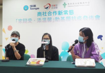 煤氣公司及基督教家庭服務中心合辦「家餸愛・添温馨」,以兩階段贈送3萬個新鮮餸菜包給1千個基層家庭,讓社工可透過社交平台及餸菜包派發站瞭解他們迫切的生活需要,從而提供適時協助。